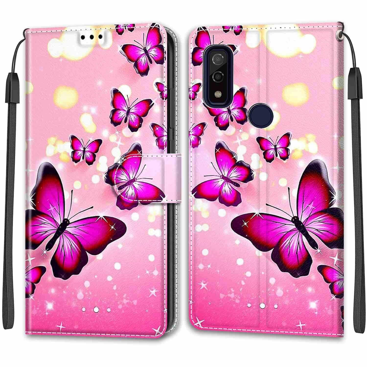 KENHONER Arrows We ケース手帳型 F-51B FCG01 対応 FCG01 Fujitsu用 アローズ 富士通 ウィー arrows we case スマホ 携帯カバーストラップホール付き カード収納 財布型 マグネット内蔵 スタンド機能 耐衝撃 全面保護 薄型 耐摩擦 可愛い 男女兼用 (Fujitsu Arrows We F-51B FCG01対応) ピンクの蝶