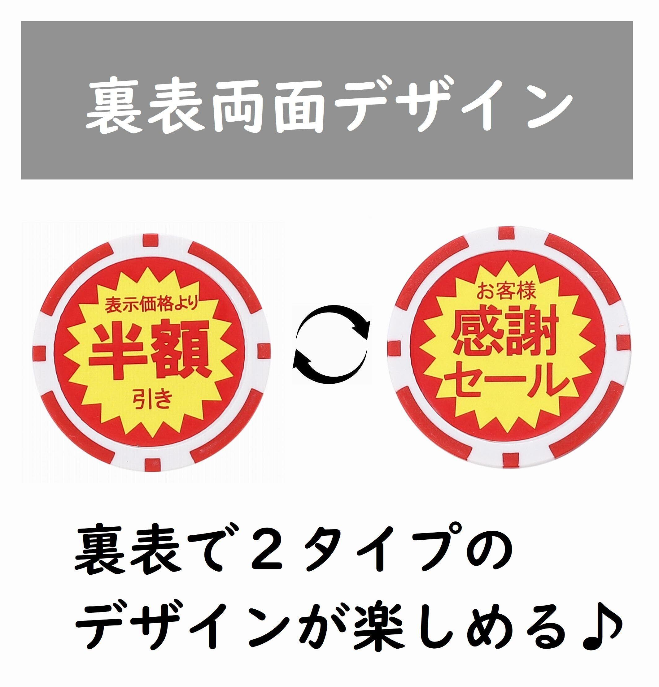 ゴルフの楽しさを倍増させる、おもしろゴルフマーカー! このカジノチップ風のゴルフマーカーは、「半額引き」や「感謝セール」のユニークなデザインが特徴。ラウンド中に笑いを提供し、ゴルフ仲間との会話のきっかけにもなります。
