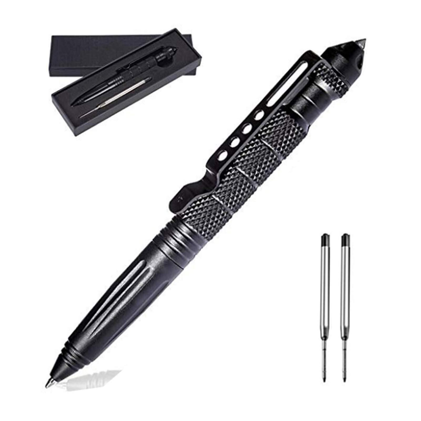 このタクティカルペンは、筆記と保護の機能を兼ね備えた多機能なアイテムです。車の中に閉じ込められているなどの緊急事態では、窓を破るために使用することができます。ペン本体は航空宇宙グレードのアルミ合金製で、強度と耐食性に優れています。アタックチップはタングステン鋼でできており、ガラスを簡単に割ることができます。滑り止めデザインは快適なグリップを実現し、パッケージには1本の戦術ペンと2本の予備のインク詰め替えが同梱されています。このペンはノントキシックで、成年向けユニセックスのアイテムです。筆記用インクはブラックで、水に溶けます。このペンはサバイバル、自衛、緊急事態など様々な用途に使用することができます。