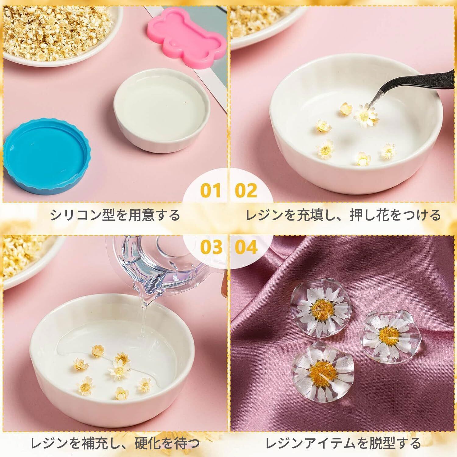 【幅広い用途】ドライフラワーは、レジン液の封入やネイルアートのパーツとして使用できます。ハンドメイド作品制作など幅広い用途で、様々なDIYニーズにお応えします。