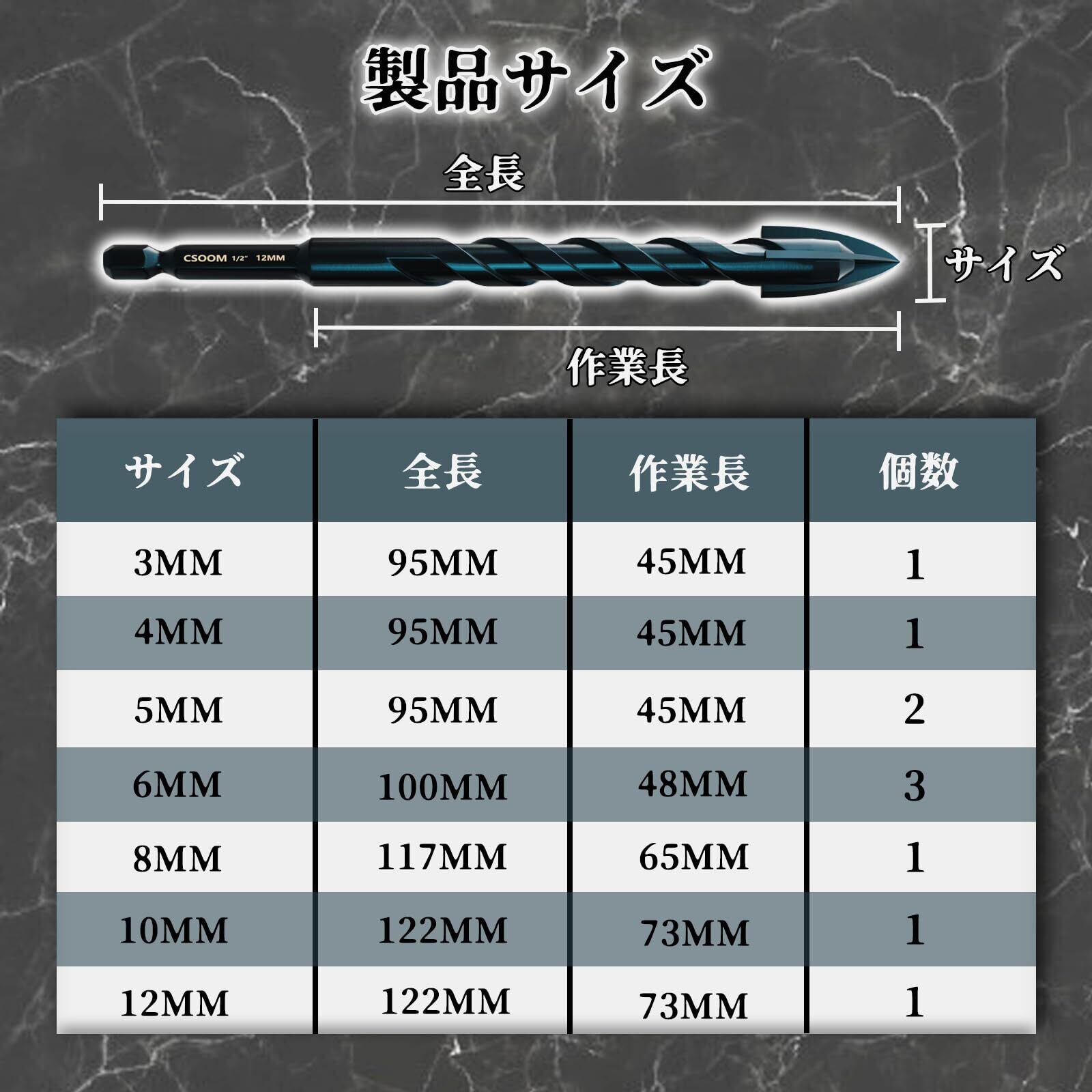 CSOOM 10セット 4翼 コンクリートドリル、ドリル 穴 開け 、陶器 穴あけ ドリルビット