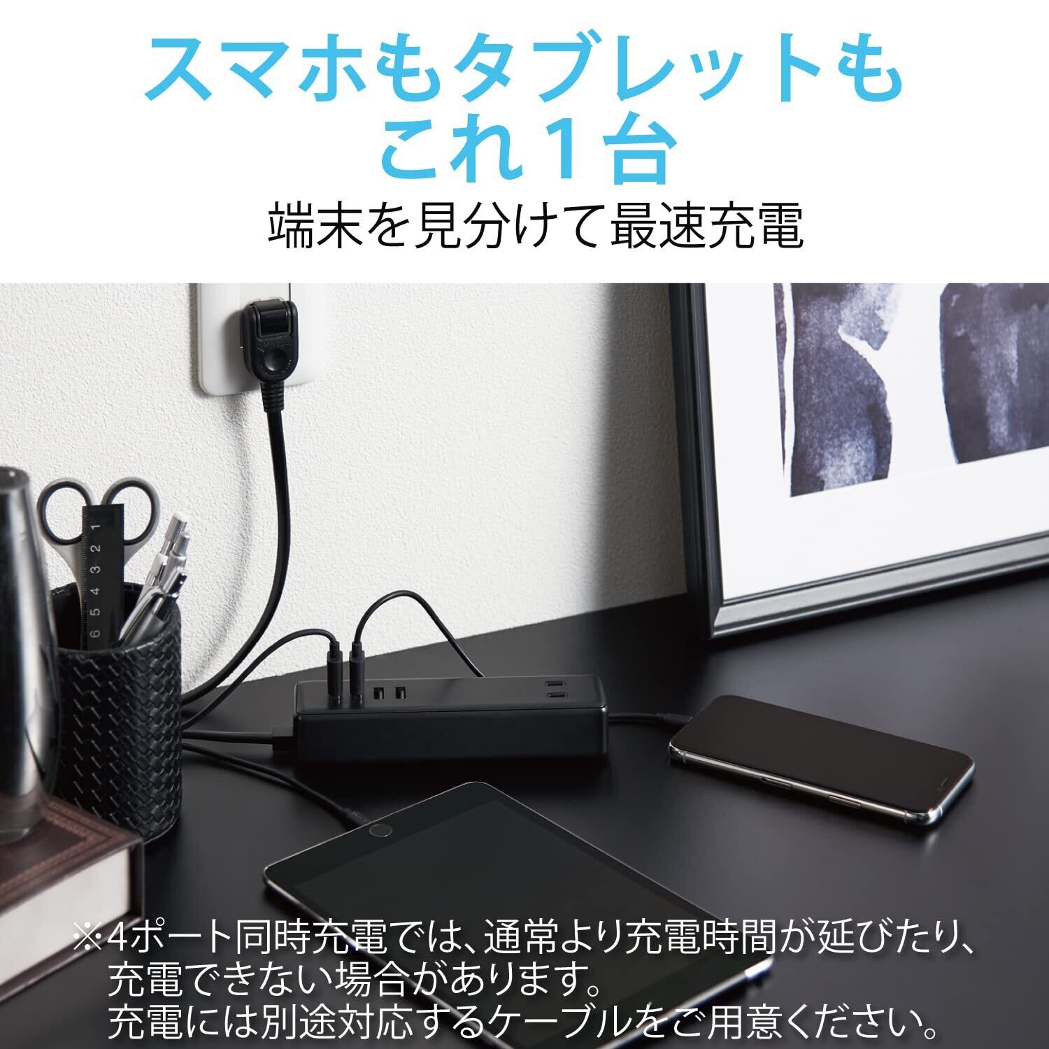 エレコム 電源タップ USBタップ 12W (USBポート×4 コンセント×2) 1.5m ブラック ECT-0415BK