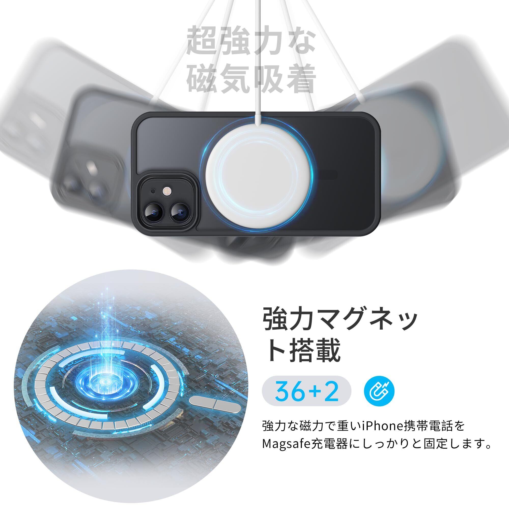 Anqrp iPhone11 用 ケース マグネット搭載 [Magsafe対応] ワイヤレス充電対応 半透明 マット感 耐衝撃 米軍MIL規格 指紋防止 ストラップホール付き スマホケース アイフォン 11 カバー 6.1インチ ブラック