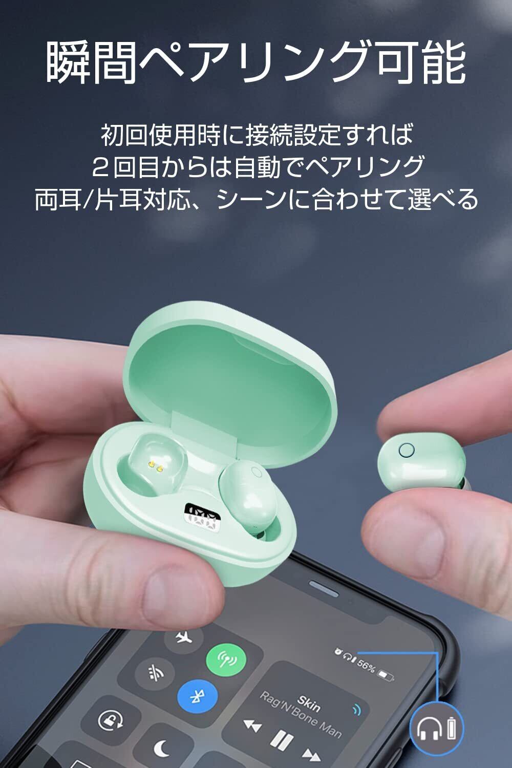 SLuB ワイヤレスヘッドセット Bluetooth5.2 イヤホン ワイヤレスイヤホン 自動ペアリング 自動電源ON/OFF 両耳 TWS 左右分離型 LEDバッテリー残電量表示 長時間待機 充電ケース付き 軽量 Siri対応 ノイズキャンセリング iPhone/iPad/Android対応(グリーン)