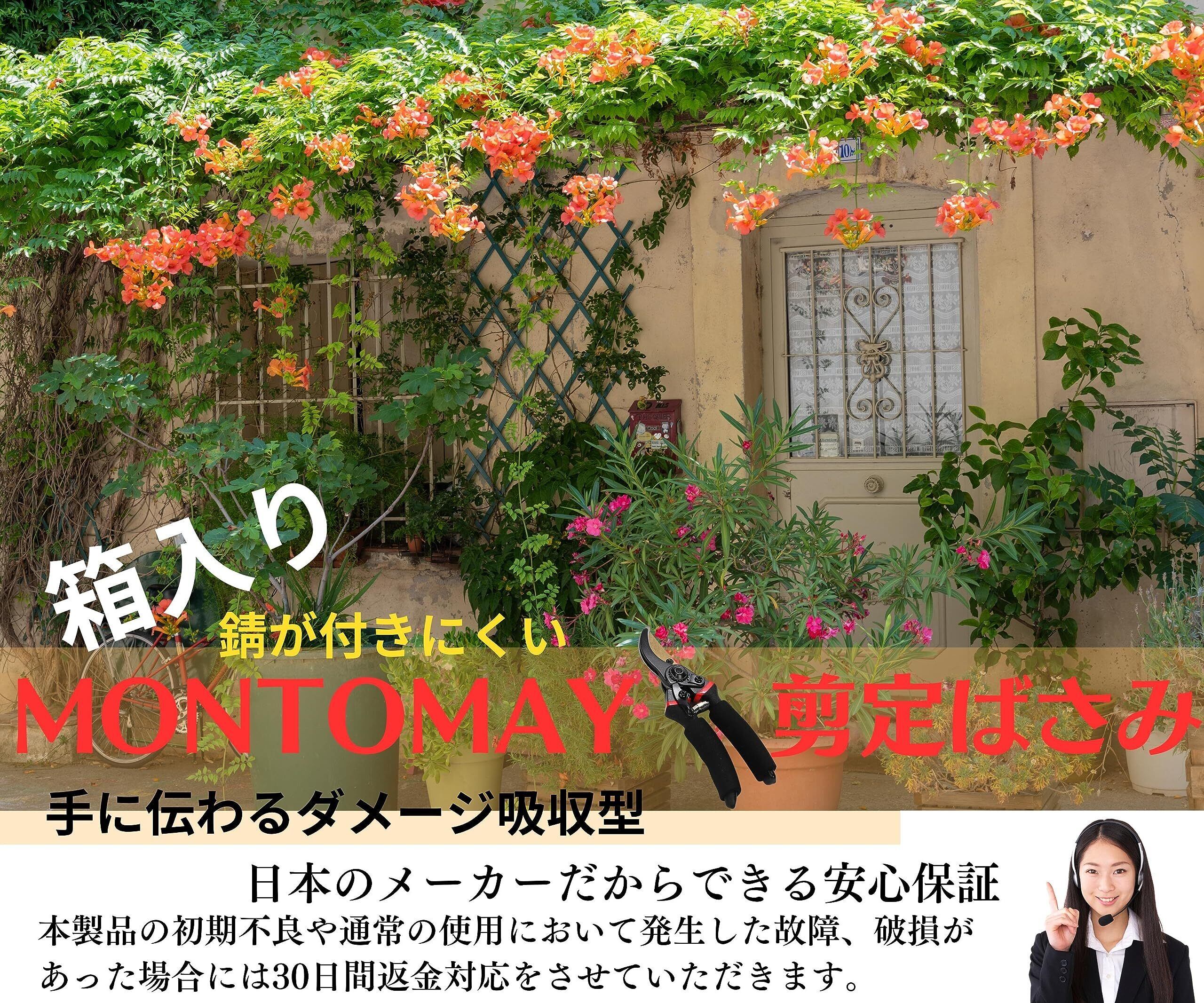 MONTOMAY【プロの切れ味】剪定バサミ 枝切りばさみ 2段階調節 剪定ハサミ SK-5刃 剪定ばさみ 園芸ハサミ (ブラック)