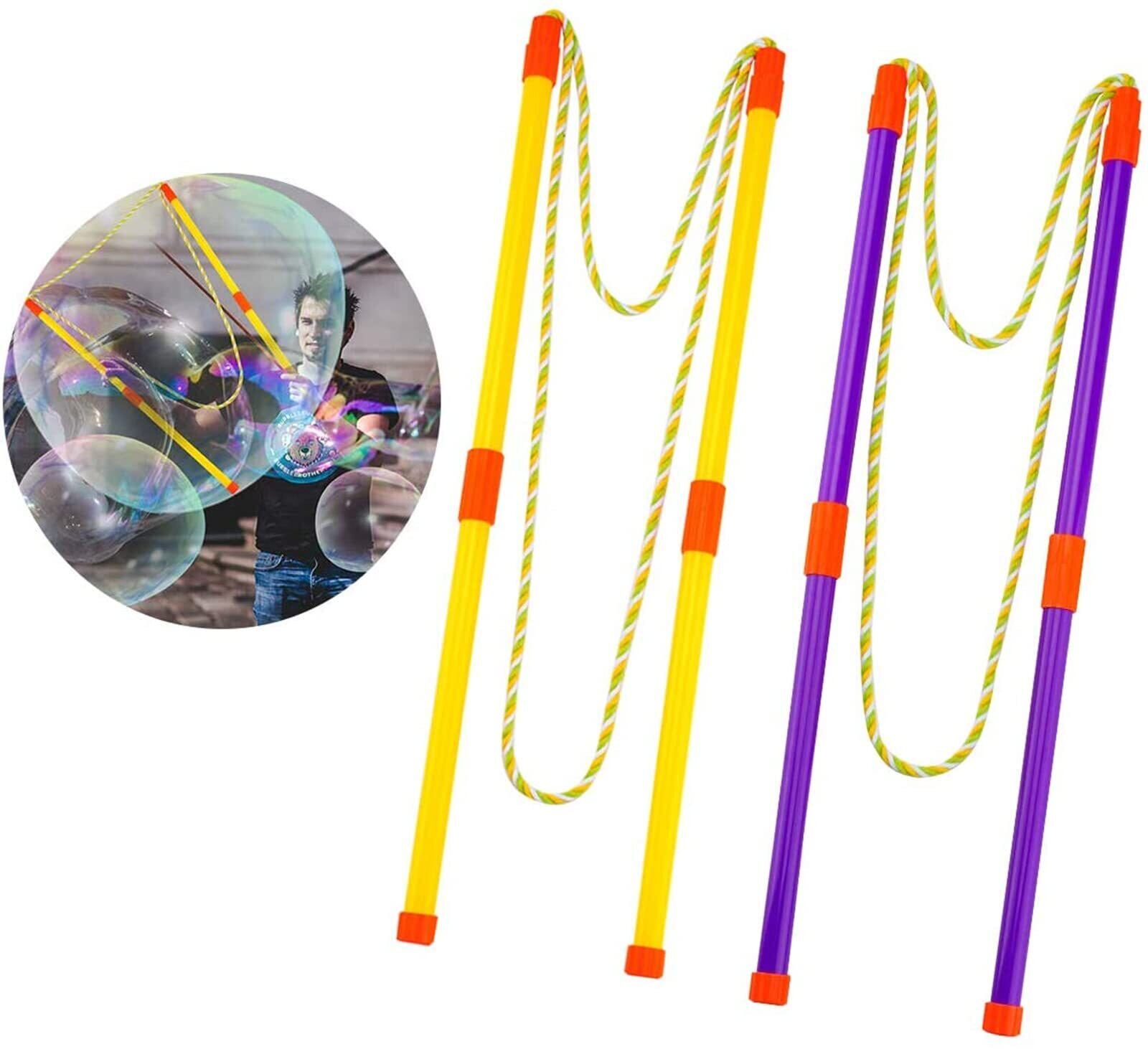 【軽量でが遊びやすい】本製品は持ち手部分のプラスチックとバブルを作る部分の麻縄で作られています,麻縄が泡水を吸収しやすく、巨大シャボン玉ができます。