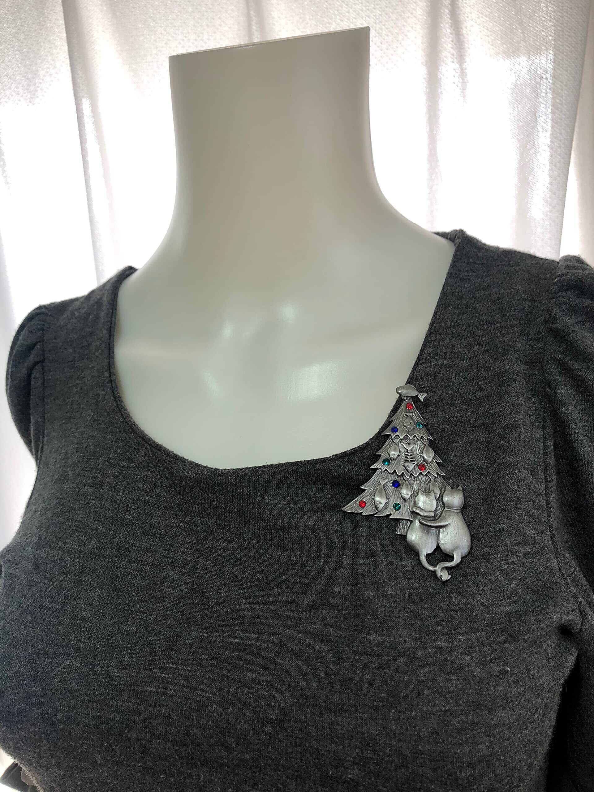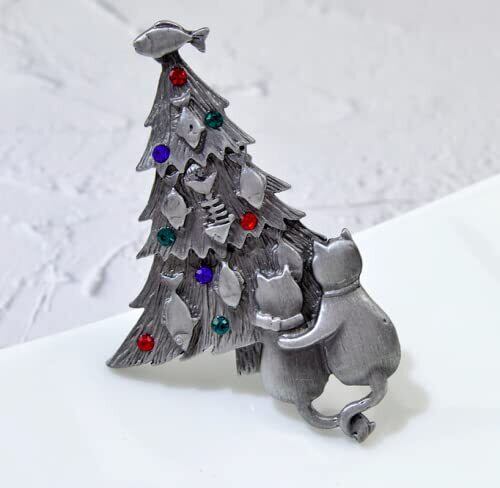 LOVES(ラブズ) ブローチ ネコ クリスマスツリー アンティークシルバー [ベルベット調ポーチ付き]