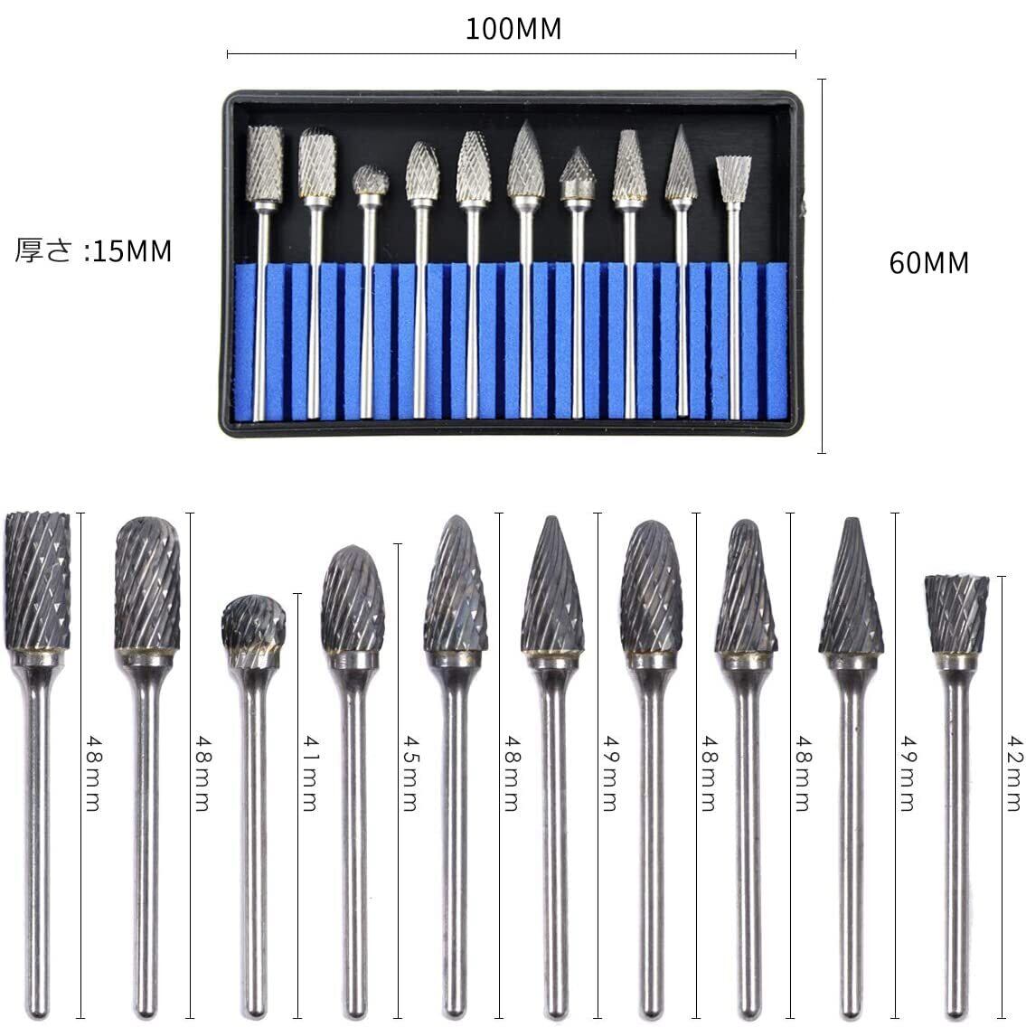 JINTONG リューター ビット ドリル ビット タングステンバー 超硬カッター ルータービット10本セット(3mm軸 刃幅6mm)
