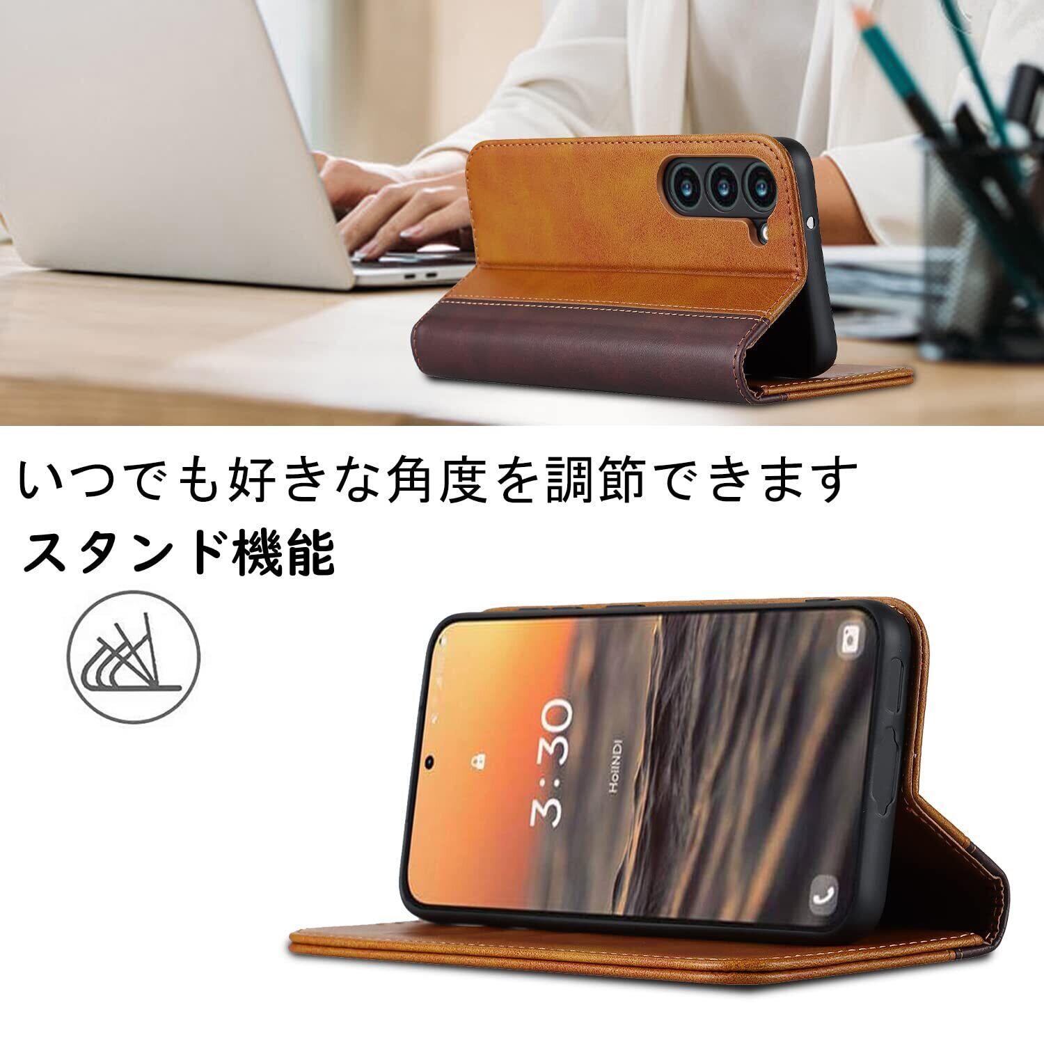 Havaya Galaxy S23 ケース ギャラクシーs23 ケース sc51d ケース 手帳型 SCG19 au ドコモ samsung サムスン 耐衝撃 SC-51D カバー SoftBank カード収納 スタンド機能 レザー-イエロー+ブラウン