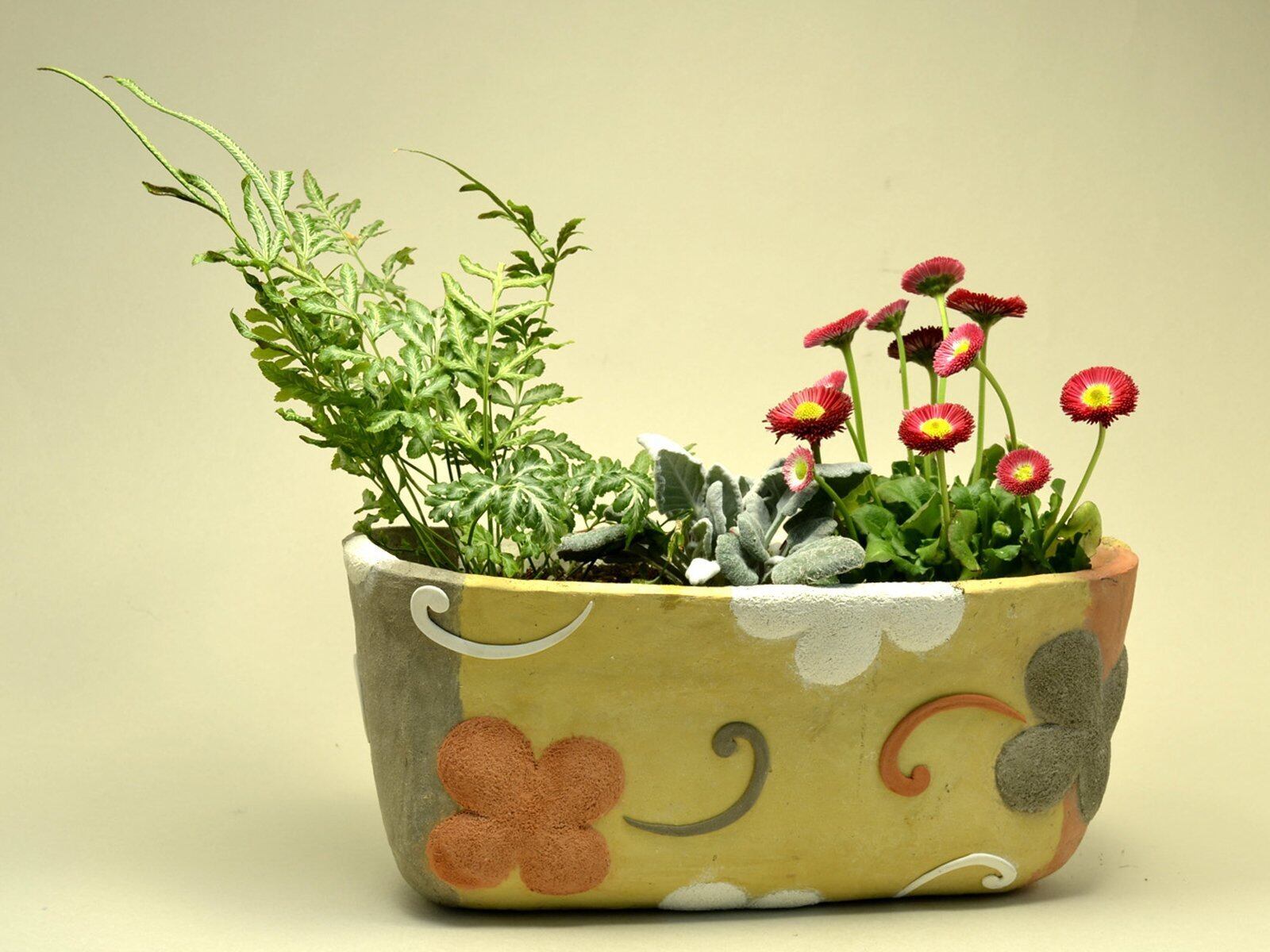 黒土と黄土は天然の陶土を使用していますので、素朴な質感で、ガーデニング、陶芸っぽい作品もできます。