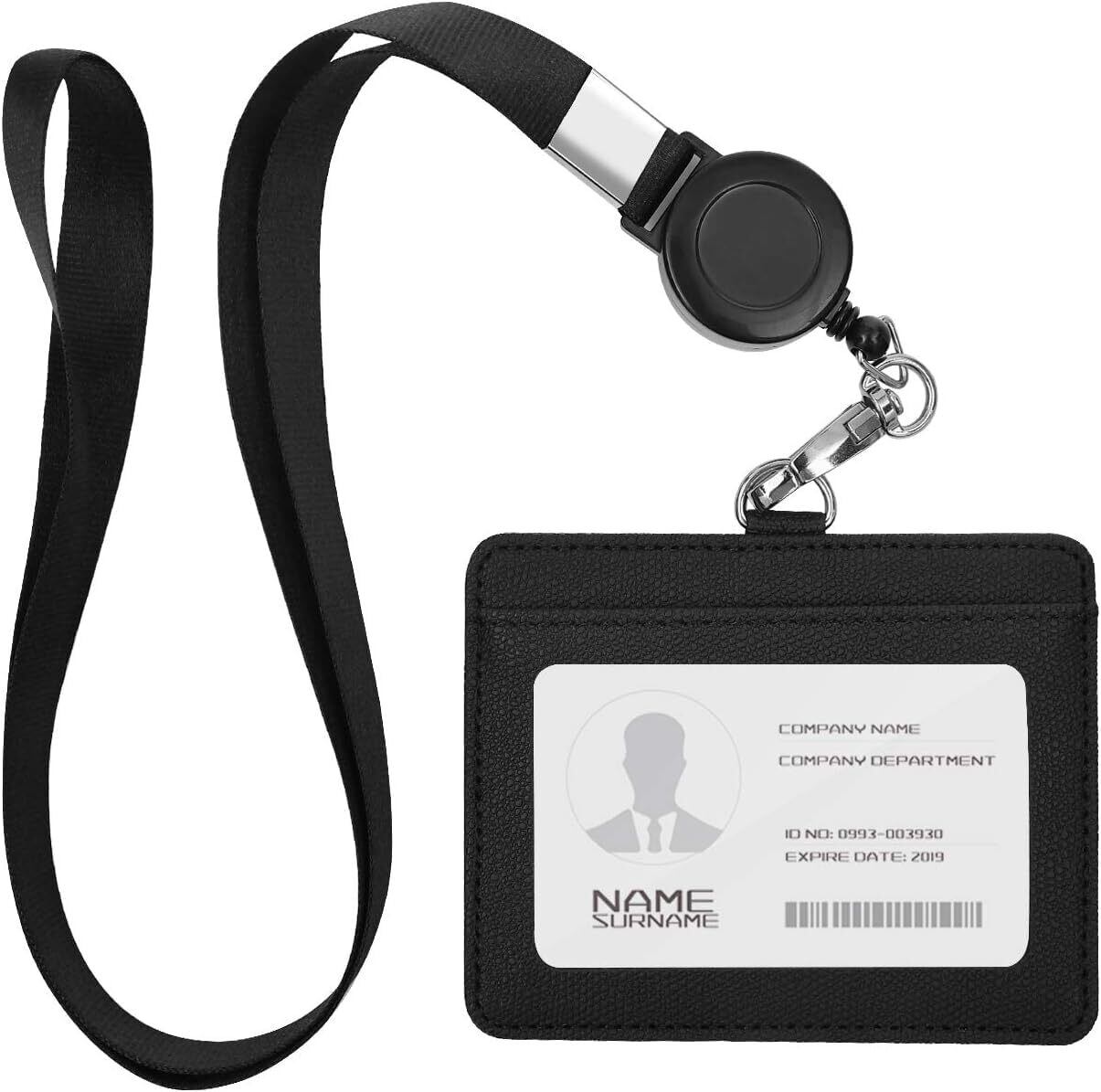 Furifer IDカードホルダー ネームホルダー 伸縮リール式 名札ホルダー 社員証 idカードケース PU革 横型 両面用 カードホルダー 首掛け 通勤 通学 男女兼用 (横型 + ブラック)