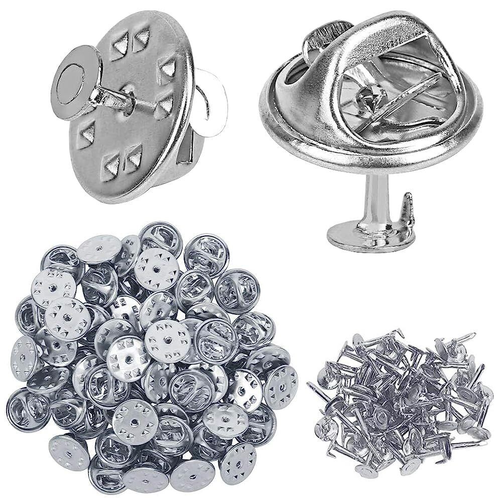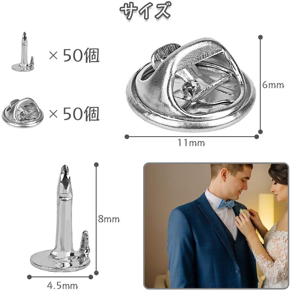 ピンバッジのピンバッチ バタフライ型留め具 50セット ピンバッジ 留め具 蝶タック バタフライクラッチ ピンズ ラペルピン タックピン ピンバッジ 金具 パーツ 蝶タック金具 バタフライ型留め具と土台の広い針 服飾小物のDIY ブートニアのDIY ハンドメイド (シルバー)