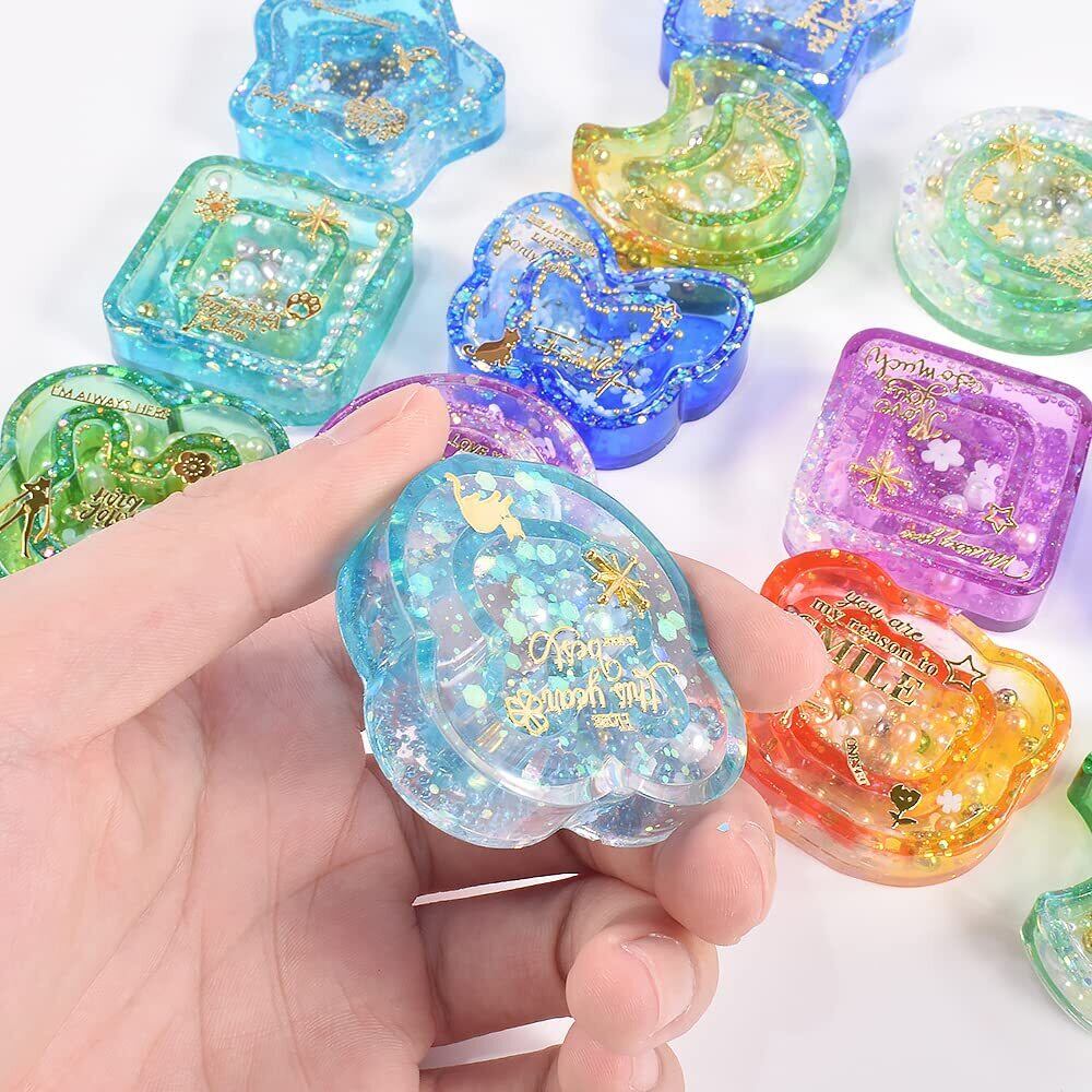 中にパーツやデコ素材を入れてカシャカシャさせたり、カラーオイルや水などをいれても中身がゆっくり動くからとても可愛い!