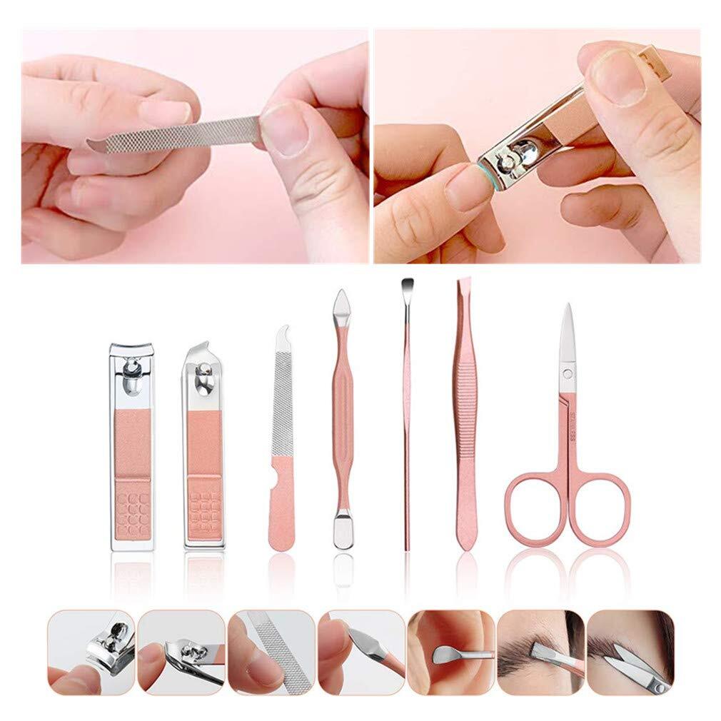 RuiChy 多機能爪切り セット マニキュアセットプロフェッショナルローズゴールド 眉毛はさみ ピンセット 爪やすり ネイルケア ペディキュア グルーミングキット ケース付き にとって 旅行での使用(8点セット)