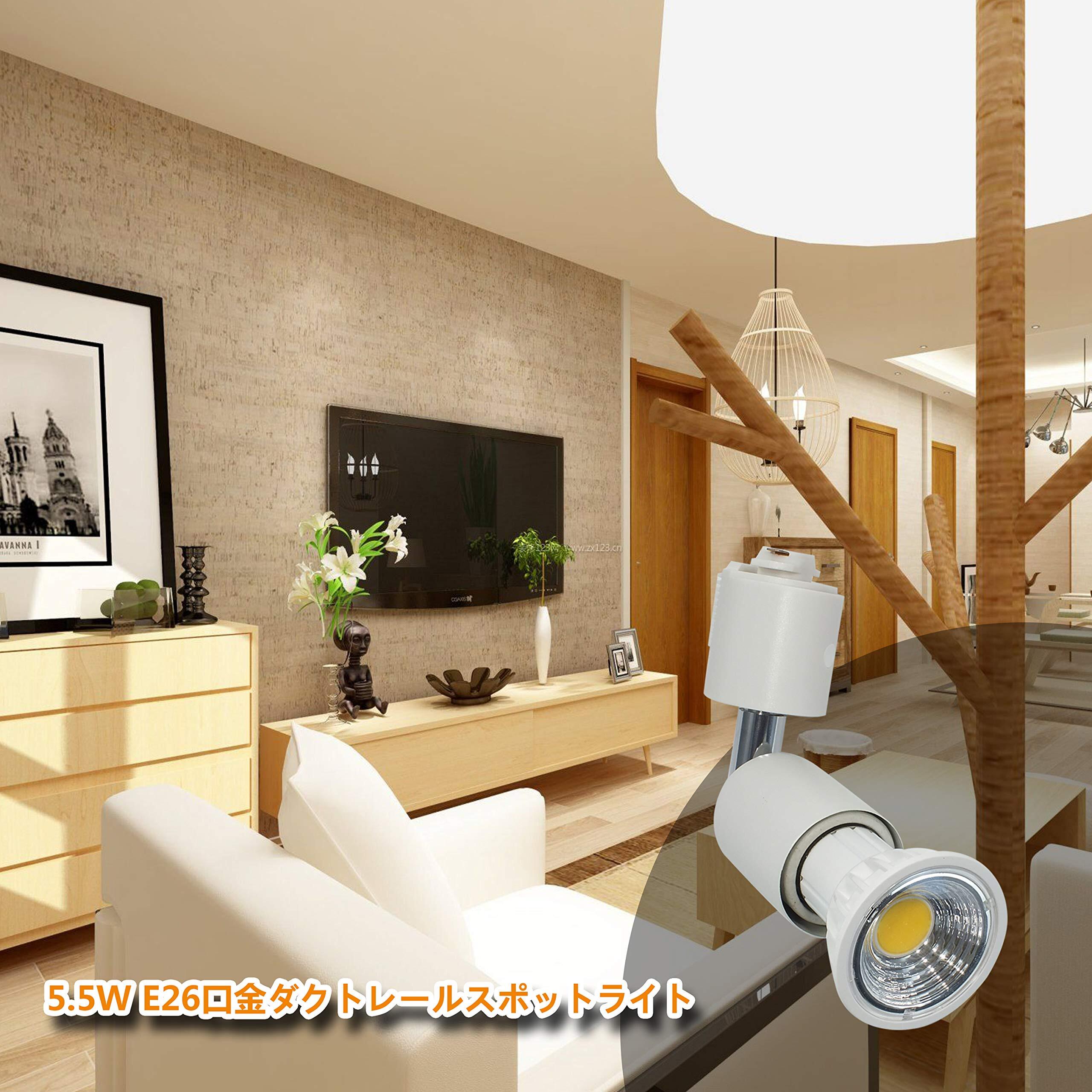 ダクトレール用スポットライト E26口金 LED電球付き LEDスポットライト5.5W(ハロゲン電球60W相当) 昼光色6000K RA95 550LM 非調光 ビーム角90度 白い 3個セット(器具+LED電球)