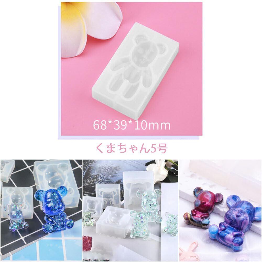 サムコス くま シリコンモールド UVレジン ソフトモールド 5個セット かわいい おもしろい ファッション 動物 モールド 型 ハンドメイド DIY 手作り アイデア 手芸 抜き型 キーホルダーストラップ ペンダント アクセサリー 道具 パーツ オーナメント(熊)