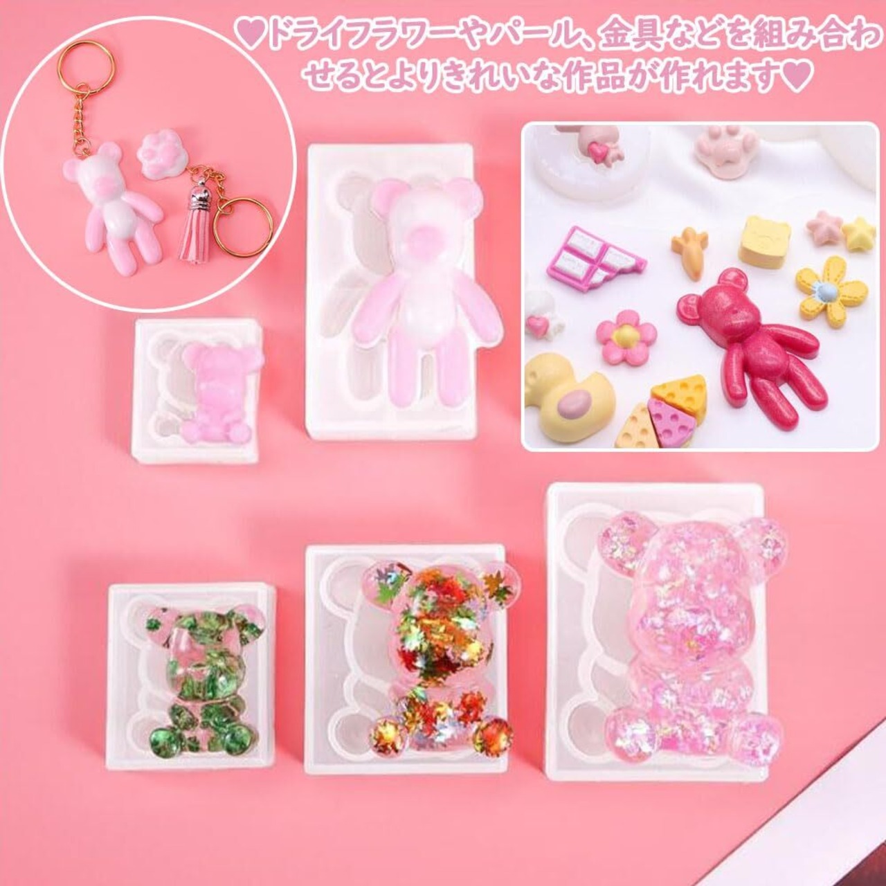 多様な形状:形や大きさの異なる5種類のクマを使用できる金型は、とても可愛くてアイデアがあります。DIYが好きな人に適していて、想像力と創造力を存分に発揮して、面白いDIY活動をすることができます。