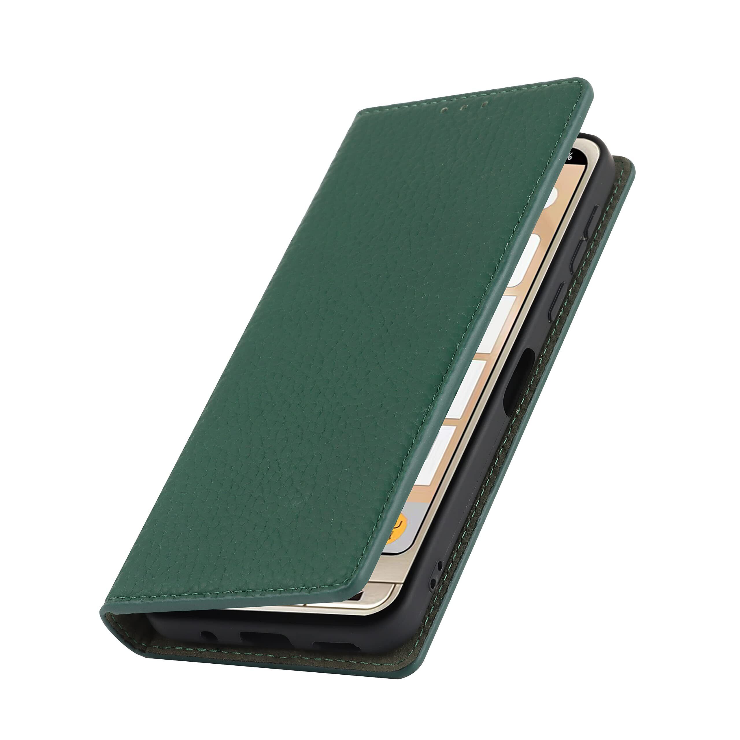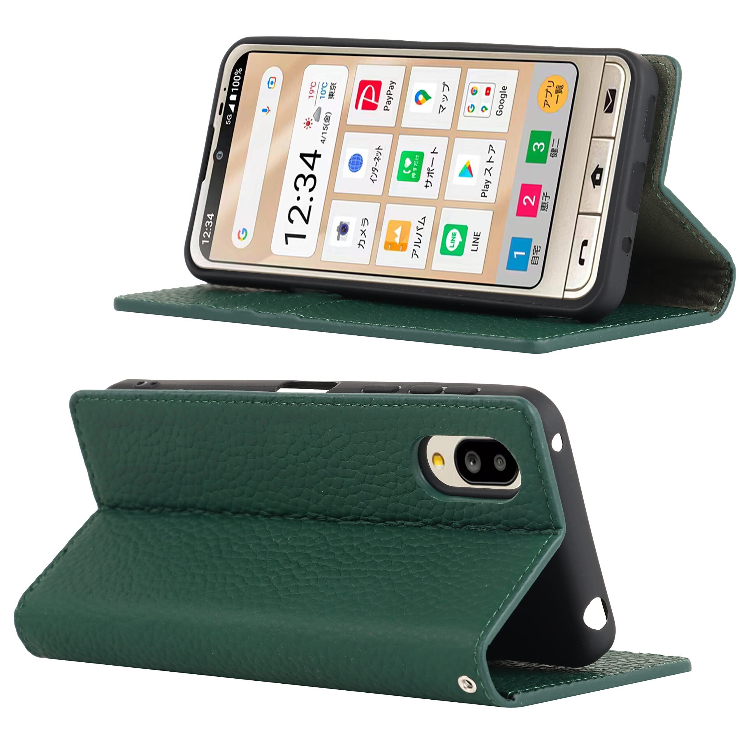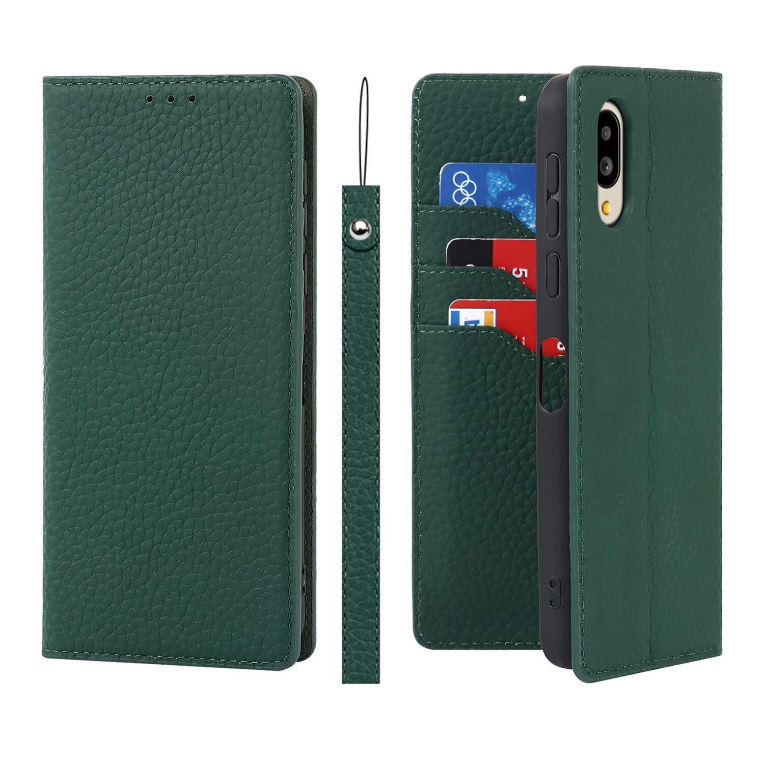 Eastwave シンプルスマホ6 ケース 本革 牛革 BASlO active / A201SH ケース 手帳型 Simple Sumaho 6 SHGO9 A201SH カバー 手帳 本革 柔らかい 本皮 スプラットホール付き スプラット同梱 内蔵マグネット-ダークグリーン