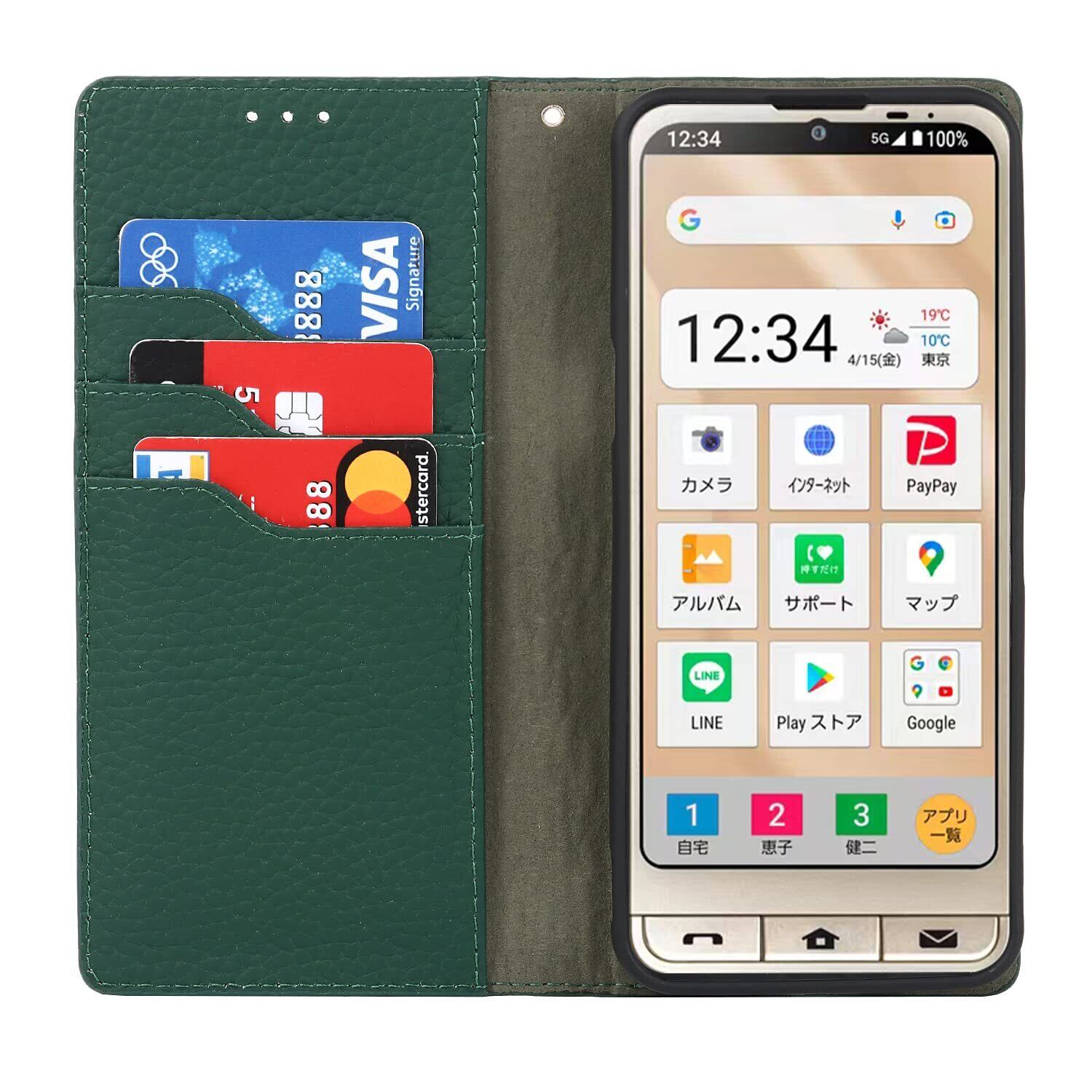 Eastwave シンプルスマホ6 ケース 本革 牛革 BASlO active / A201SH ケース 手帳型 Simple Sumaho 6 SHGO9 A201SH カバー 手帳 本革 柔らかい 本皮 スプラットホール付き スプラット同梱 内蔵マグネット-ダークグリーン | BASE SHOP