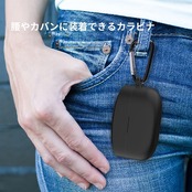 「腰やカバンに装着できるカラビナ」WF-1000XM4 ケースにカラビナが付いて、ベルトループやカバンに付けることが。 WF-1000XM4 を落とす不安や紛失の悩みを解消できます。 ※カラビナを強く引っ張ると破けてしまうおそれがありますので、ご注意ください。