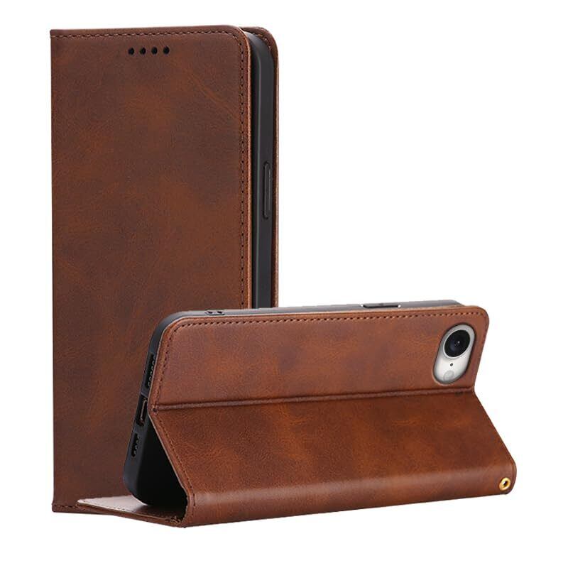 iPhoneSE4 / iPhone 16E ケース 手帳型 iPhone16E 手帳型ケース iPhone SE 第4世代 スマホケース カバー 手帳型 PUレザー カード収納 財布型 耐衝撃 ケース マグネット スタンド機能付き 5色(iPhone SE 第4世代 / iPhone 16E ケース手帳型) (ダークブラウン)