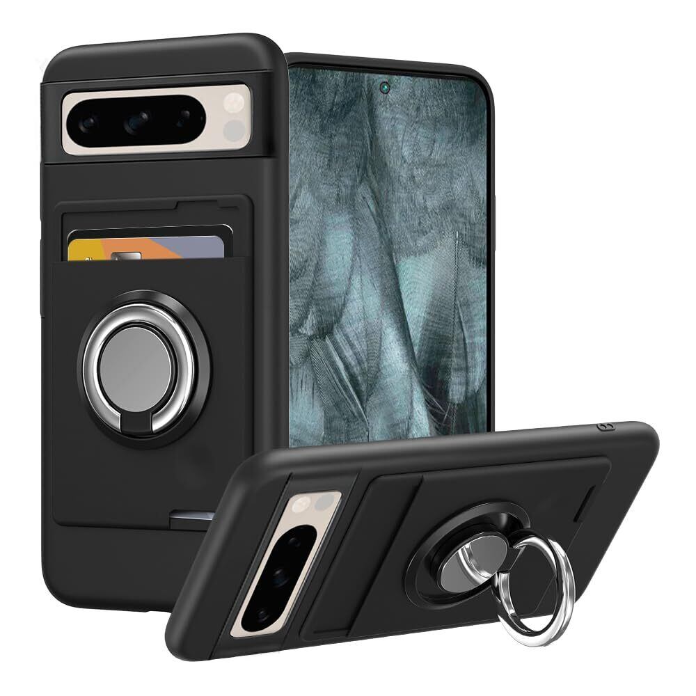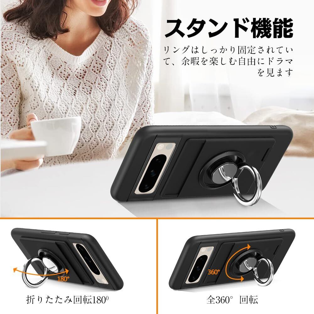 Pixel 8 Pro ケース リング付き シリコン カード収納 ピクセル8Pro ケース スタンド機能 360°回転リング 耐衝撃 耐久 滑り止め 黑