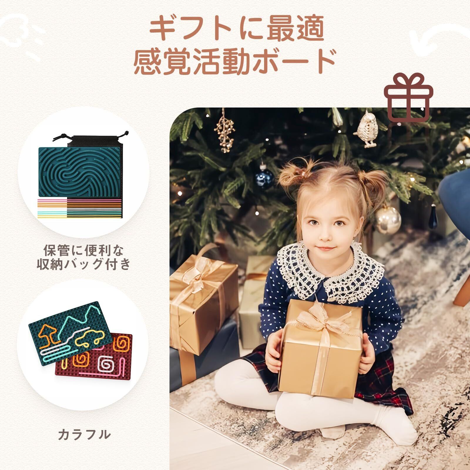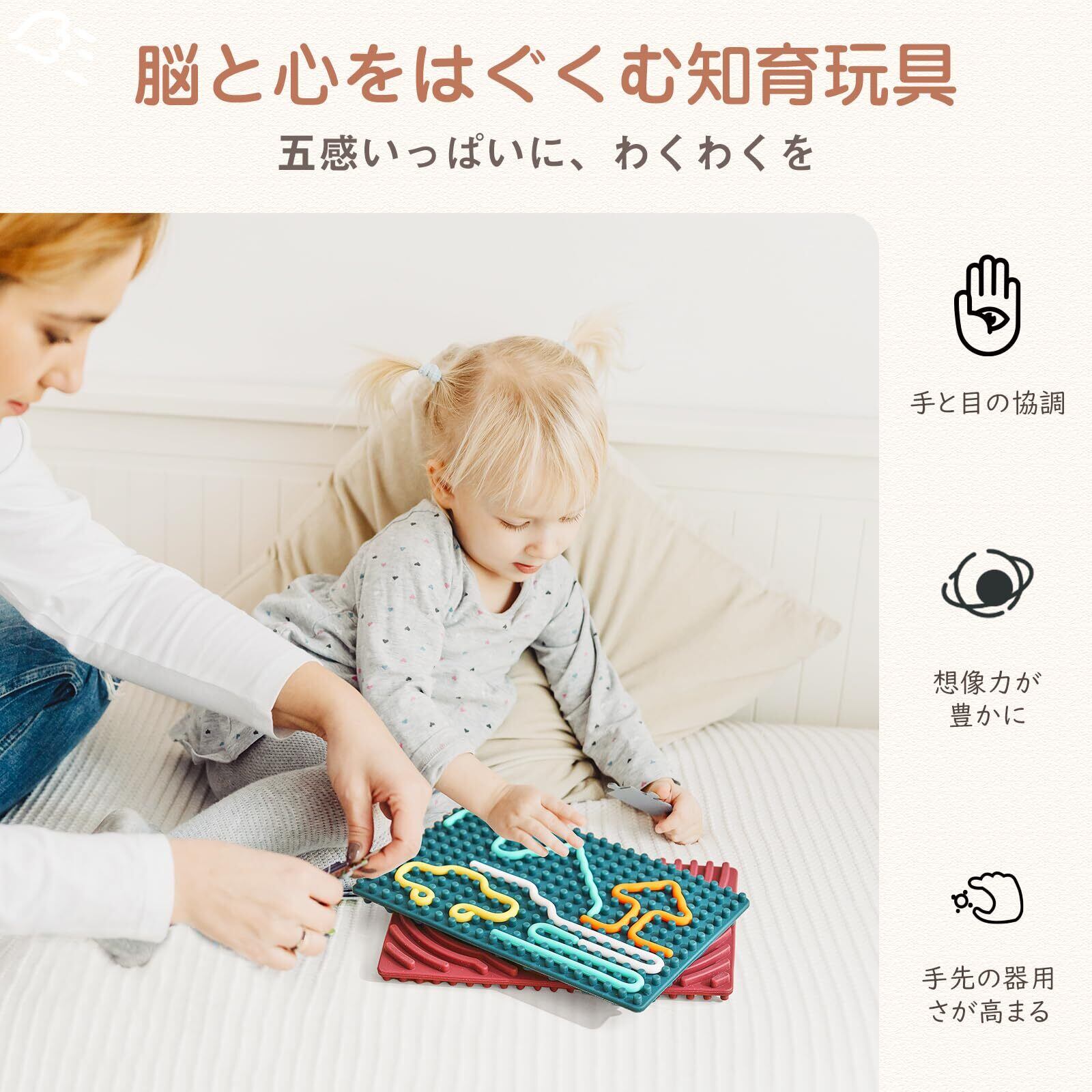 【セット内容】感覚活動ボードx1,収納バッグx1,ストリングx11。サイズ:16.7cmx10.5cm。重さ: 162g。