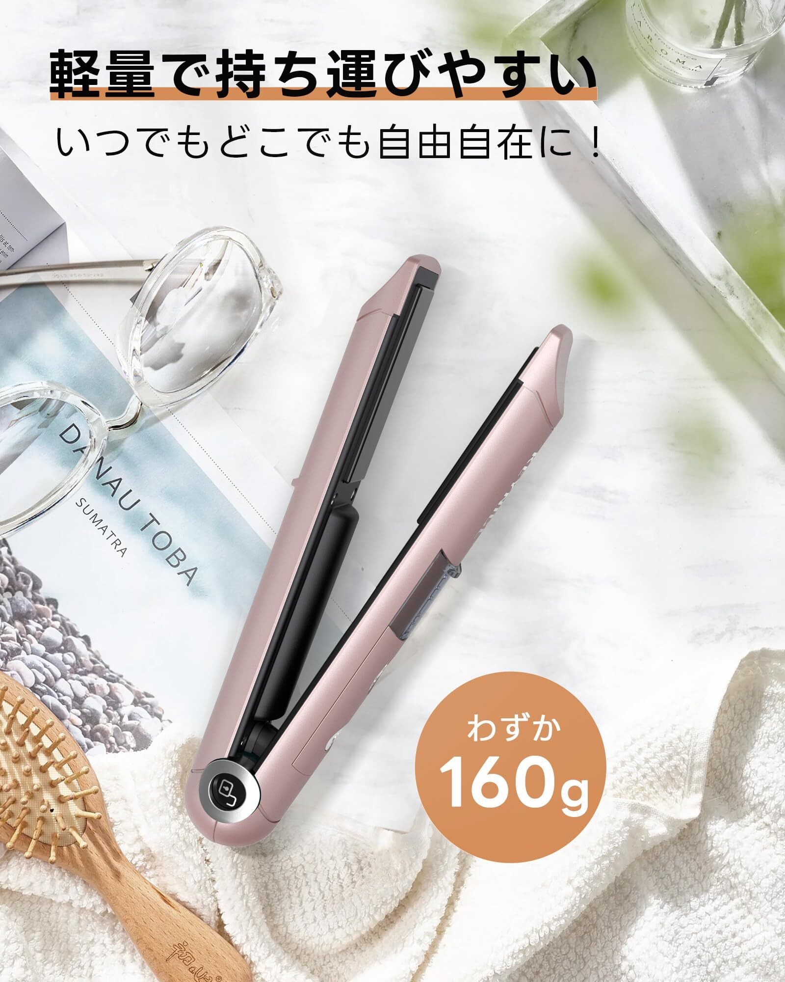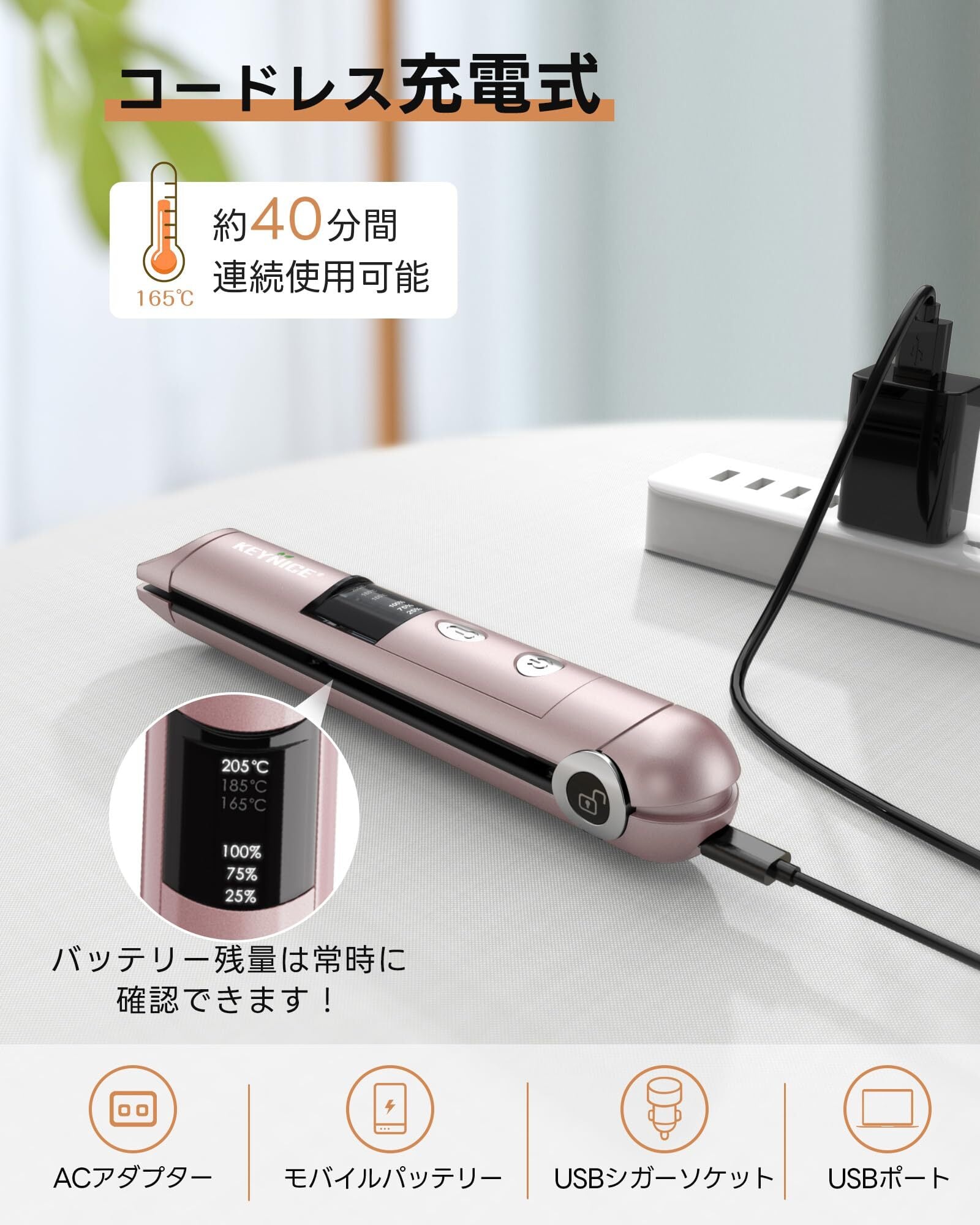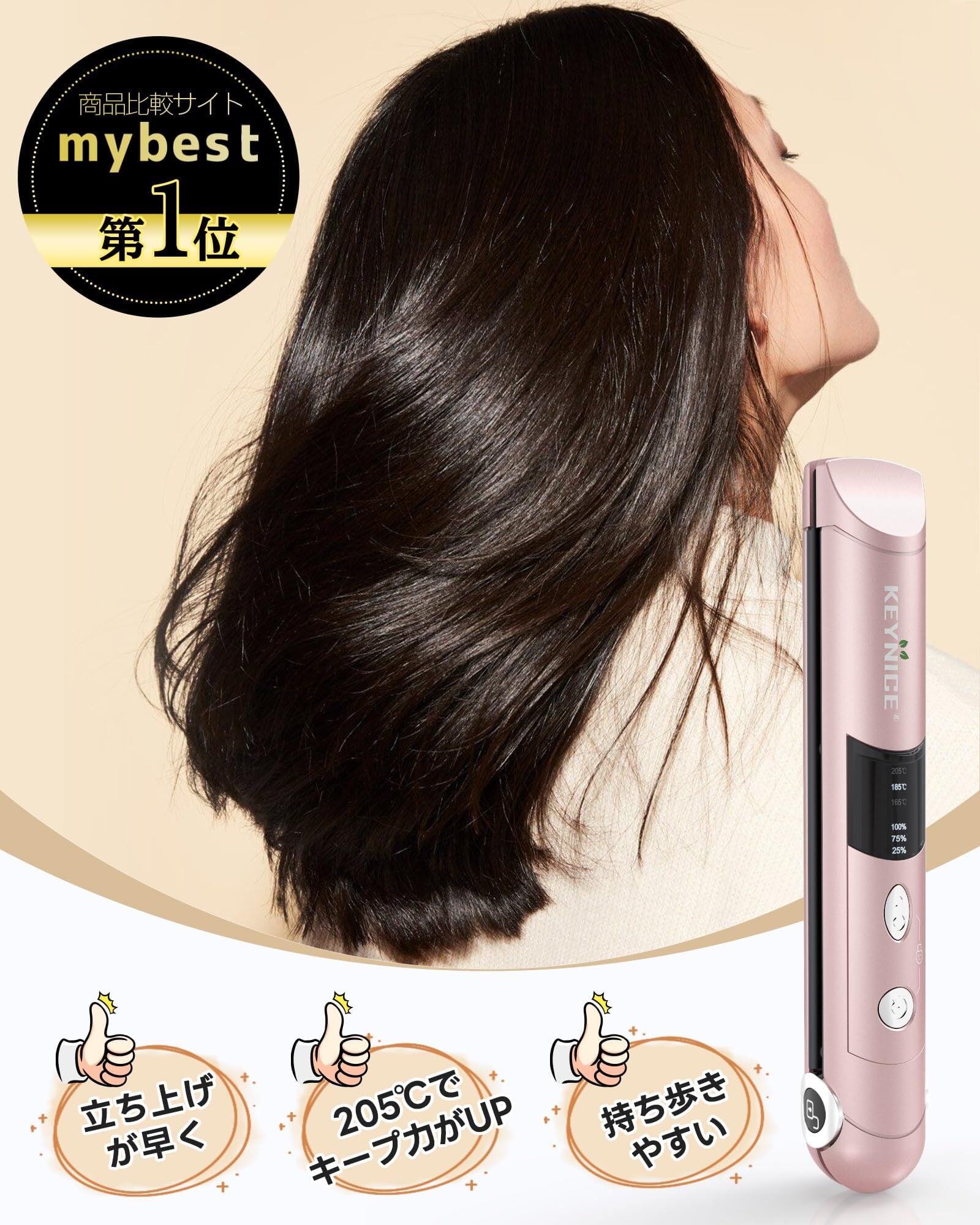 KEYNICE コードレスヘアアイロン ストレート メンズ ミニ 2way カール 長時間使用 usb充電式 Max205℃ 3段階温度調節 持ち運び 小型 ワイヤレス ポーチ付き 美容 新KN-2606 ピンク | BASE SHOP