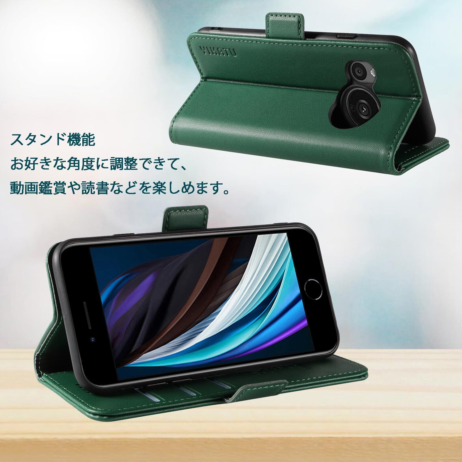 シャープ AQUOS Sense8(SH-54D/SHG11/SH-M26)ケース 手帳型 シャープセンス8ケース sh-54dケース shg11ケース sense8スマホケース アクオスセンス8ケース 肌感レザー 携帯カバー 軽量 サイドマグネットスタンド機能【AQUOS Sense8 SH-54D/SHG11/SH-M26】レトログリーン