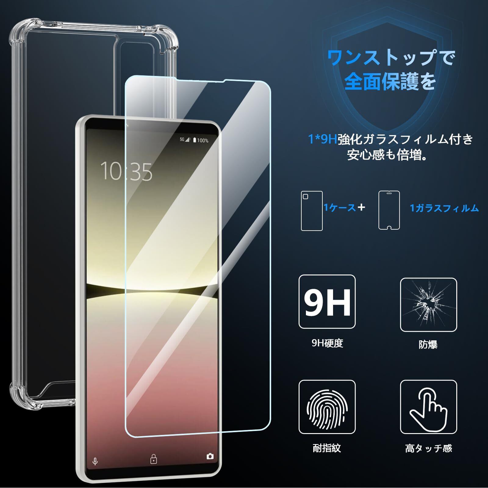 SONY Xperia 5 IV ケース SO-54C/SOG09 カバー 【ガラスフィルム付き】 OWKEY 透明 耐衝撃 米軍MIL規格 レンズ保護 エクスペリア5iv スマホケース 滑り止め 指紋防止 ストラップホール付き 黄ばみなし xperia5 iv カバー 6.1インチ クリア