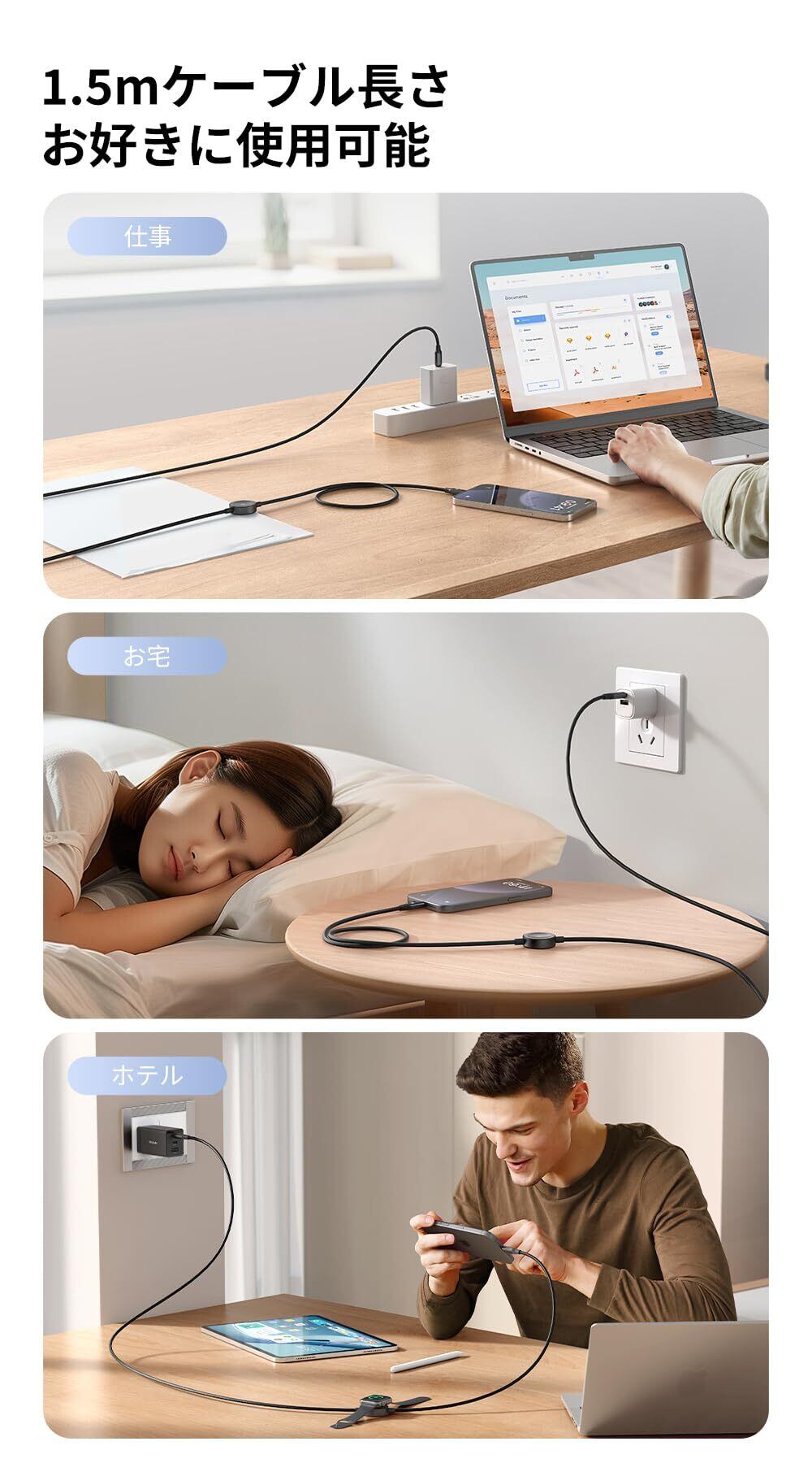 【App-le Watch、全シリーズ互換】:様々なシリーズのウォッチに自動マッチングし、簡単に充電できる。超強力な磁気モジュール、吸着力が安定、ずれていない。1.5mケーブル長さ、お好きに使用可能です。
