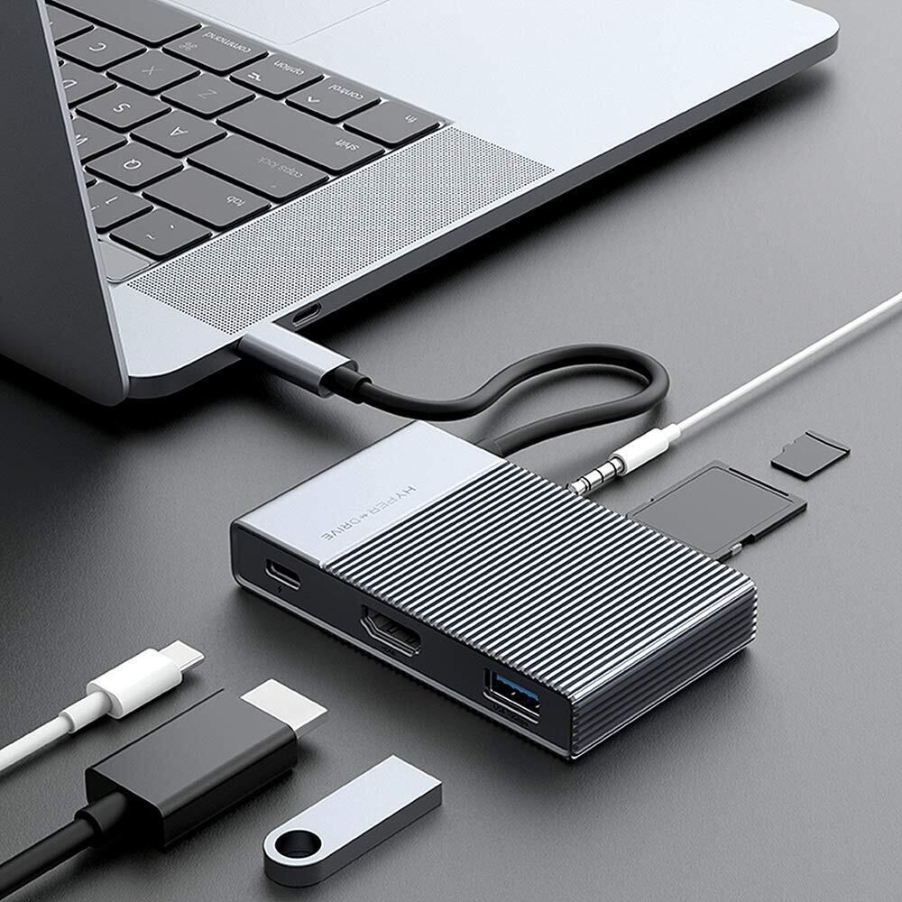 HyperDrive 6in1 USB-C ハブ Gen2 6ポート 4K60Hz HDMI 100W PD 電源供給 急速充電 micro SD/SDカードリーダー USB 3.1 Aポート マイク対応 3.5mm イヤホンジャック MacBook 対応 USB Type-C ドッキングステーション HP-HD-G206 正規品