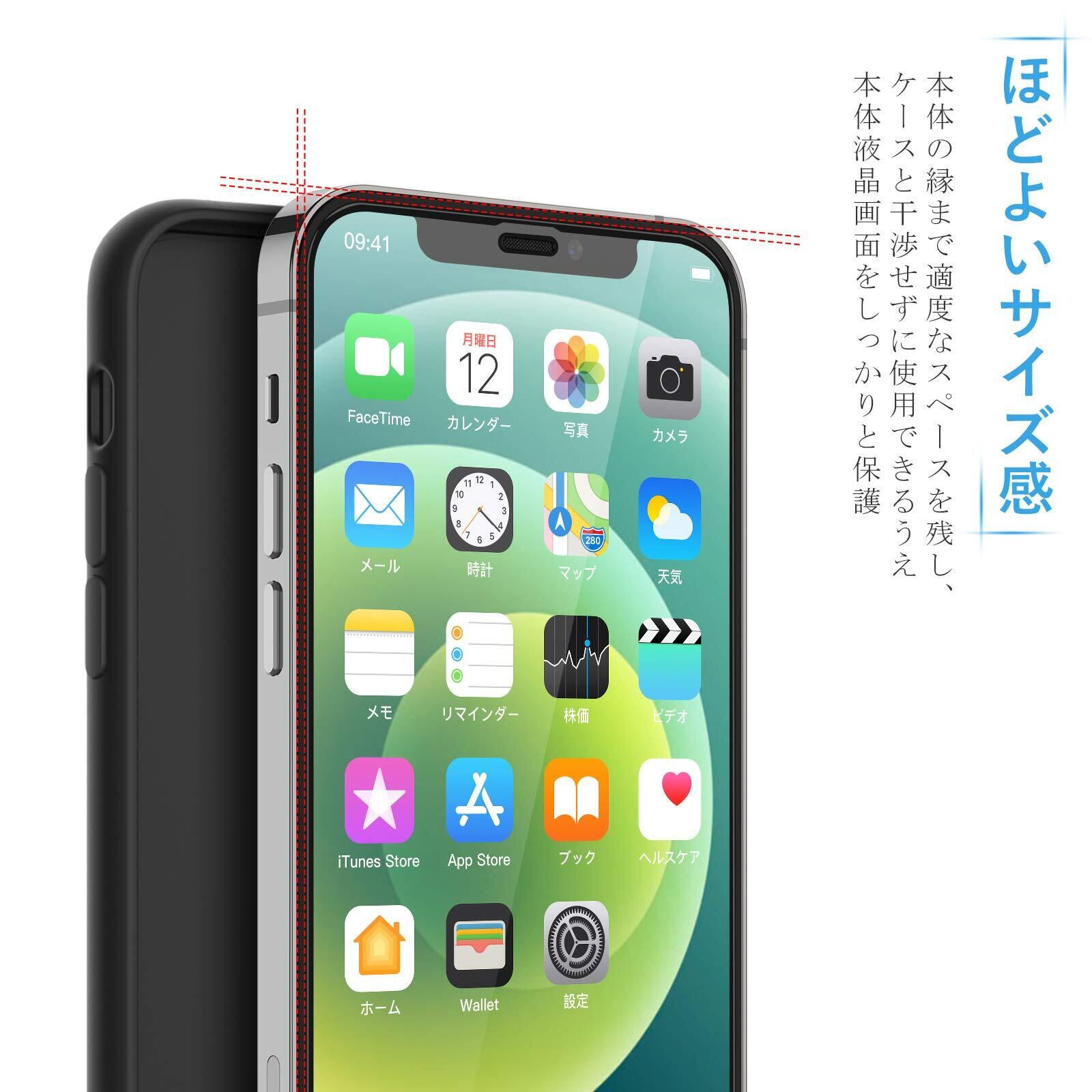 ケースと干渉せず | 本体の縁にスペースを残すデザインを取っており、ほどよいサイズ感で、液晶画面を覆いながら、スマホケースと干渉せず併用できます。