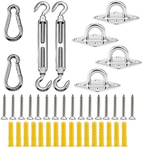 24点セット:日除けシェードを取り付きの金具が揃っています。カラビナ×2、ターンバックル×2、ダイヤモンドアイパッド×4、ねじ×16。
