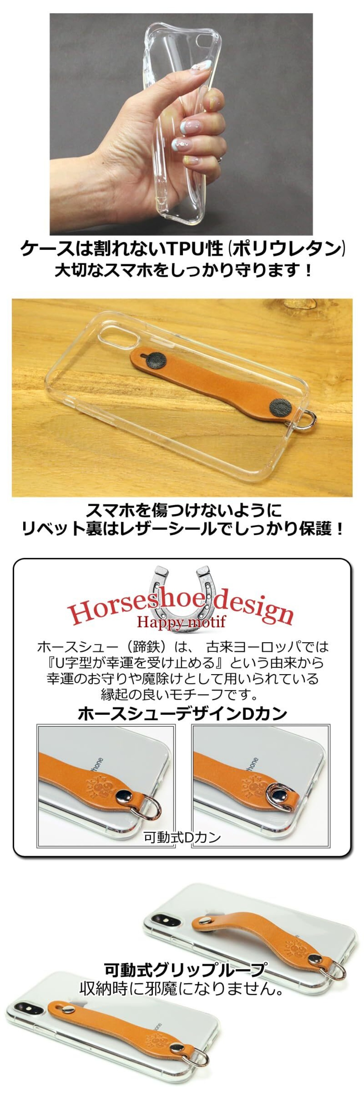クリアのTPUケースをベースに、スマホのディテールを崩さずグリップループの機能をプラスしたシンプルグリップケース。サッと指を通すだけで、スマホを楽にホールドでき様々なシチュエーションで活躍してくれること間違いなしのケースです!