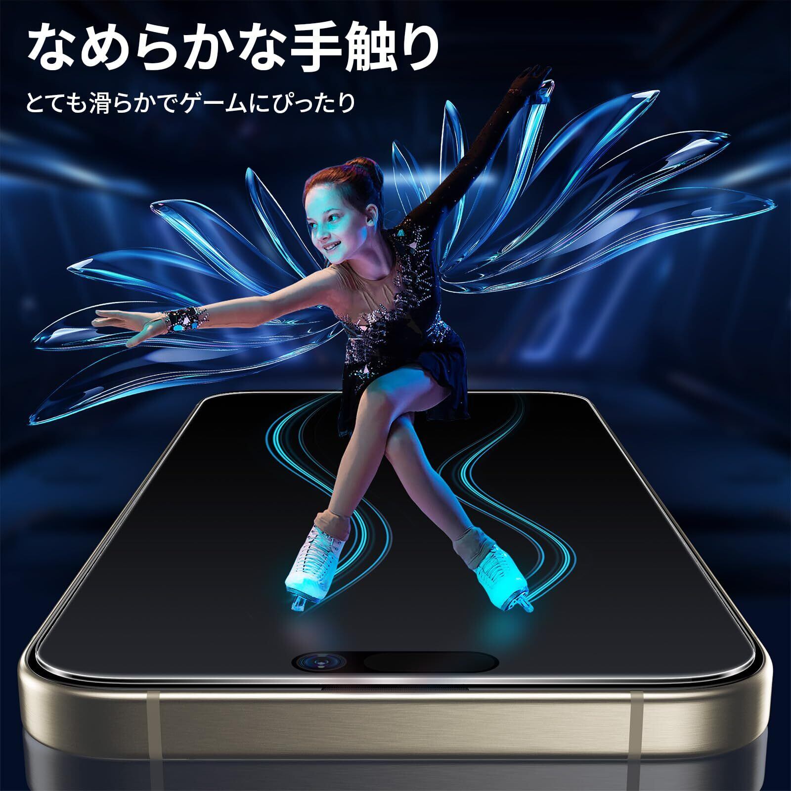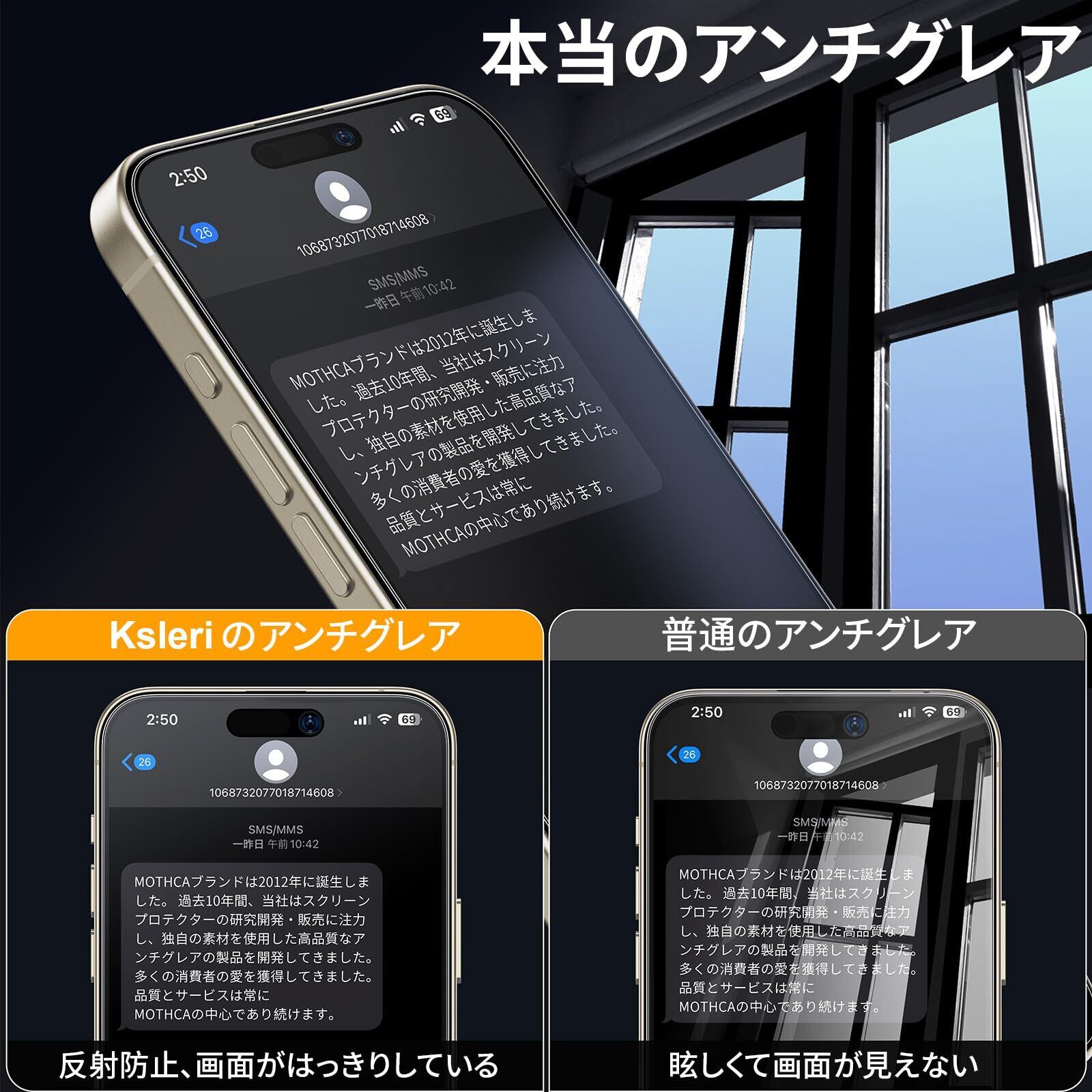 Ksleri 「アンチグレア・最新設計ガイド枠付き」2枚セット iPhone 15 Pro用 ガラスフィルム 強化ガラス 保護フィルム 気泡レス 自動吸塵ガイド枠 簡単に貼り付け 硬度9H 指紋防止 反射防止 飛散防止 キズ防止 旭硝子製 ゲームフィルム