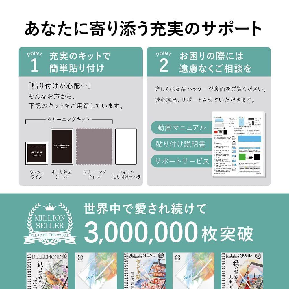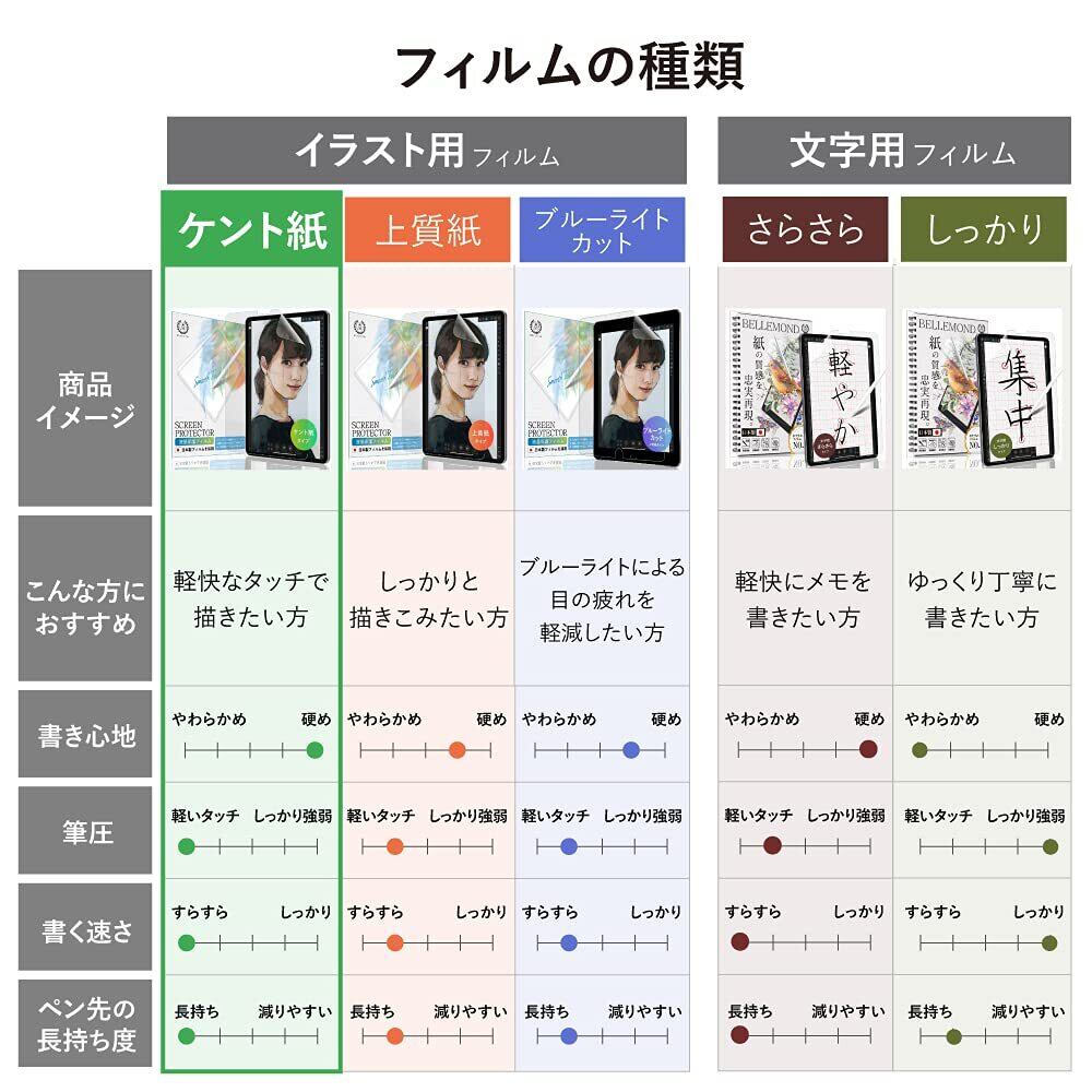 【BELLEMOND「紙感覚」とは】:紙感覚はBELLEMONDが2019年より販売している日本国内製造ペーパータイプフィルムです。紙と鉛筆を使った時のような摩擦係数を追求し、紙のような描き心地を再現しています。iPadをキャンバスにしてイラストを描く、学校でのノート代わりに使う等、iPadをもっとクリエイティブに使うためのフィルムです。