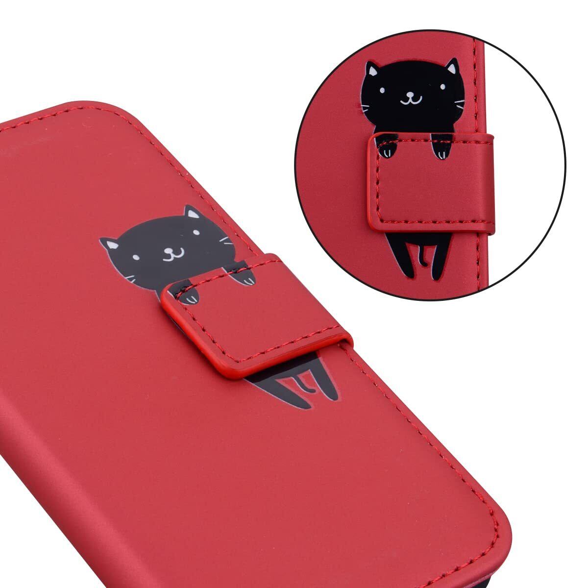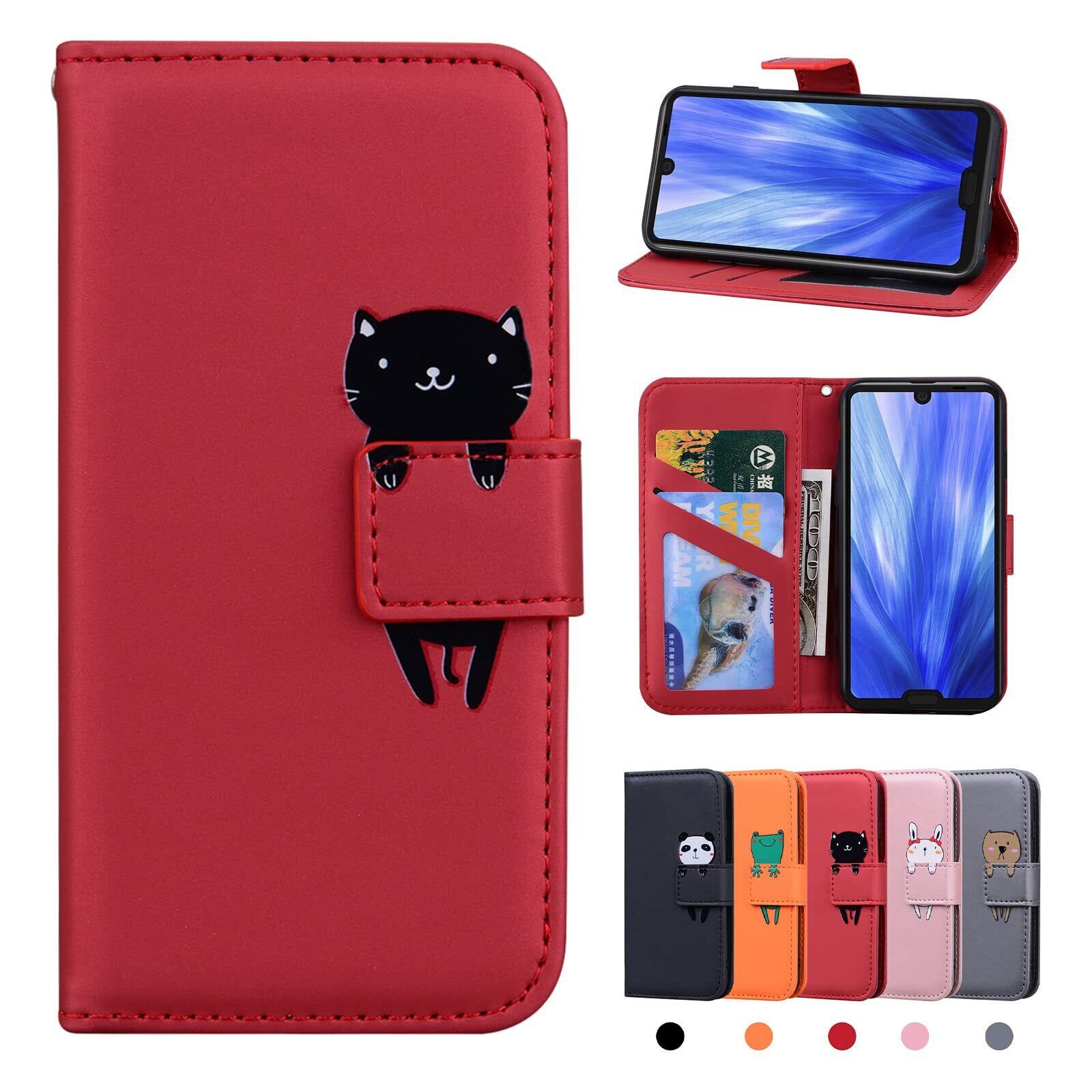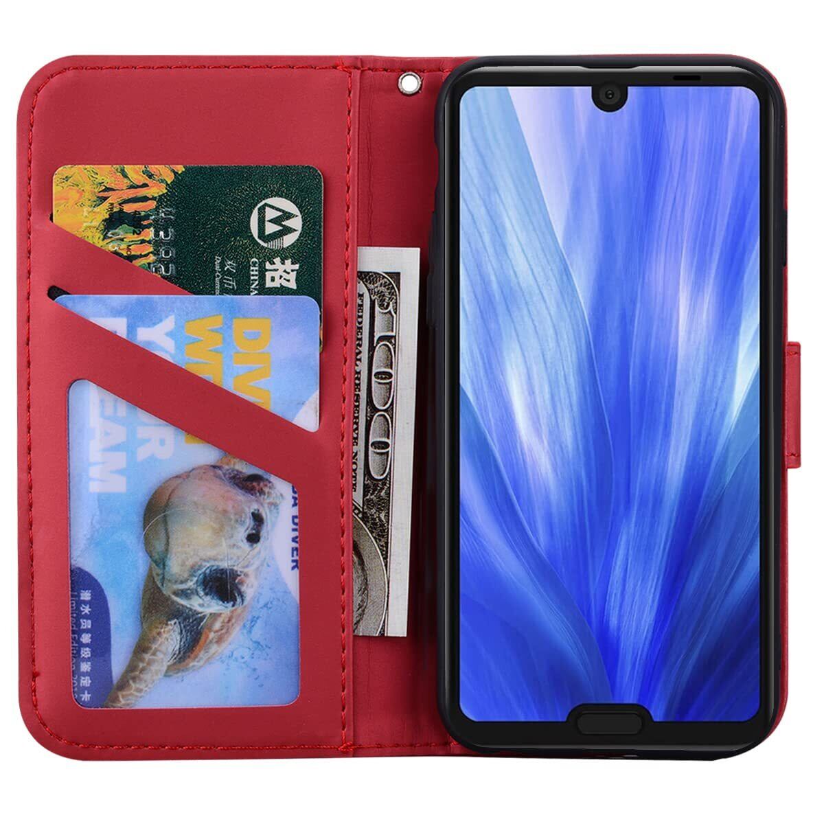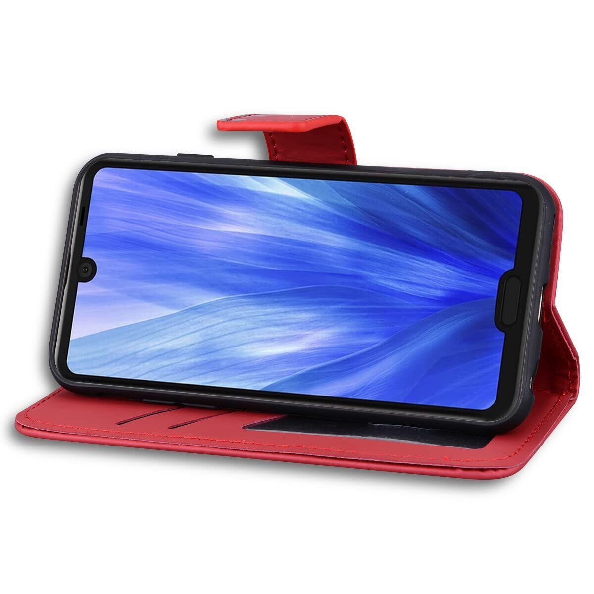 Aquos R3 ケース 手帳型 AQUOS R3 SH-04L SHV44 808SHケース カバー 手帳型ケース かわいい 動物柄 Sharp Aquos R3 携帯カバー 高級PUレザー アクオス R3カバー 財布型 マグネット式 カード収納 スタンド機能 手触りが良い 人気 おしゃれ Aquos R3用 手帳 全面保護 (SH-04L/SHV44/808SH 対応)赤猫
