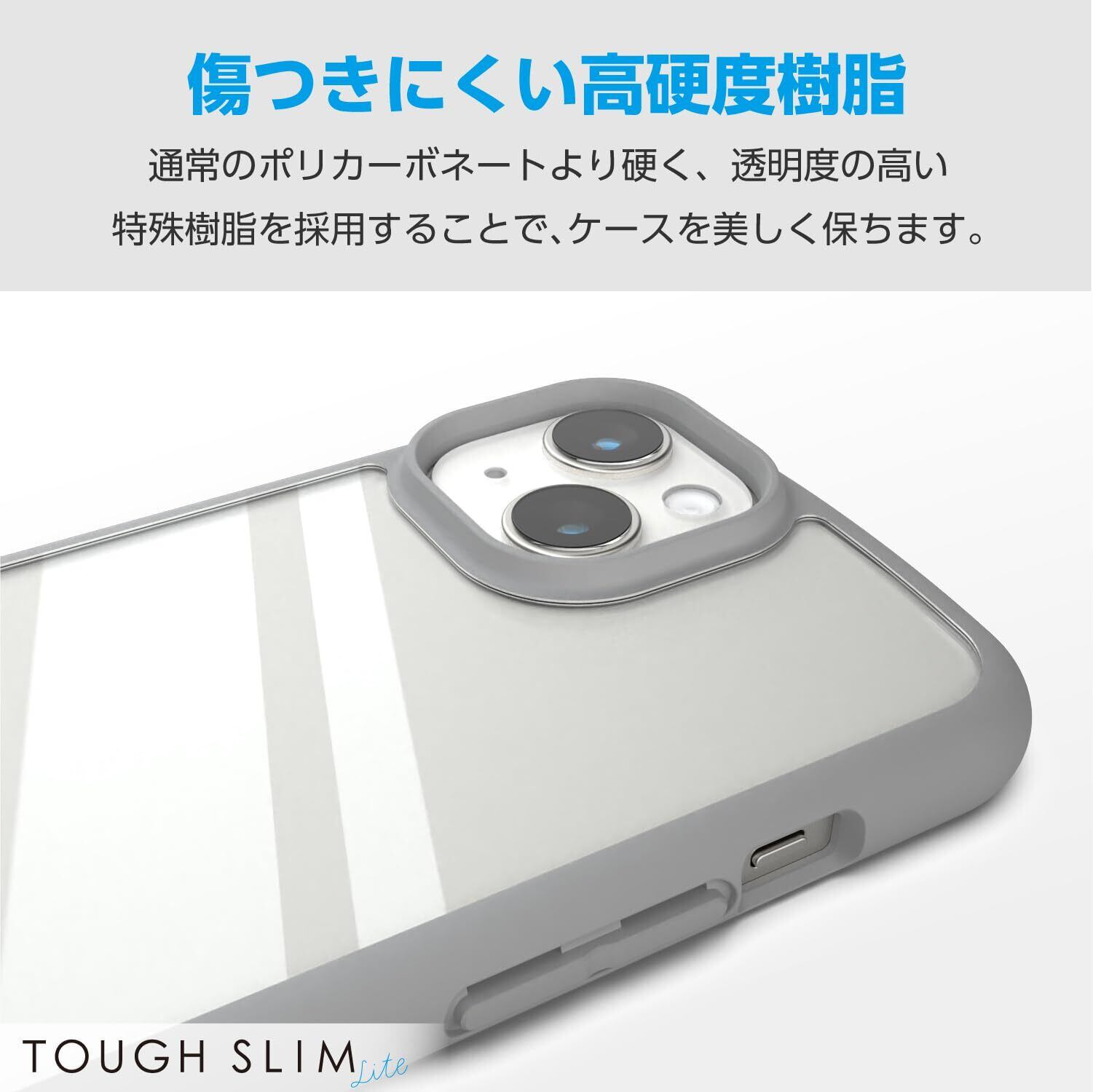 エレコム iPhone15 ケース TOUGH SLIM LITE 耐衝撃 衝撃吸収 薄型 軽量 ストラップシート付き ストラップホール付き [全周配置のエアークッションが衝撃を吸収] グレー PM-A23ATSLFCGY