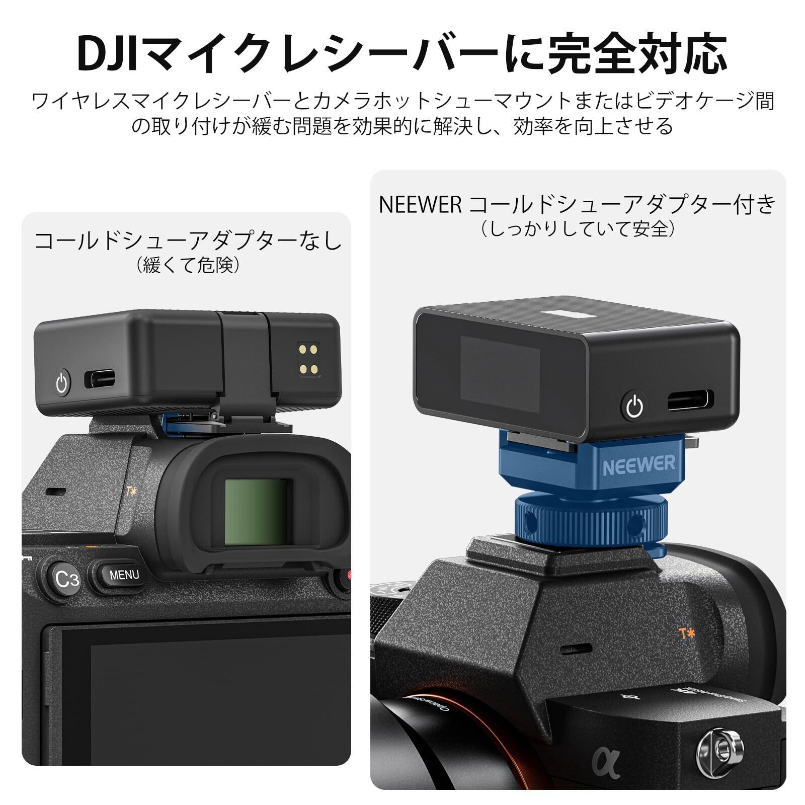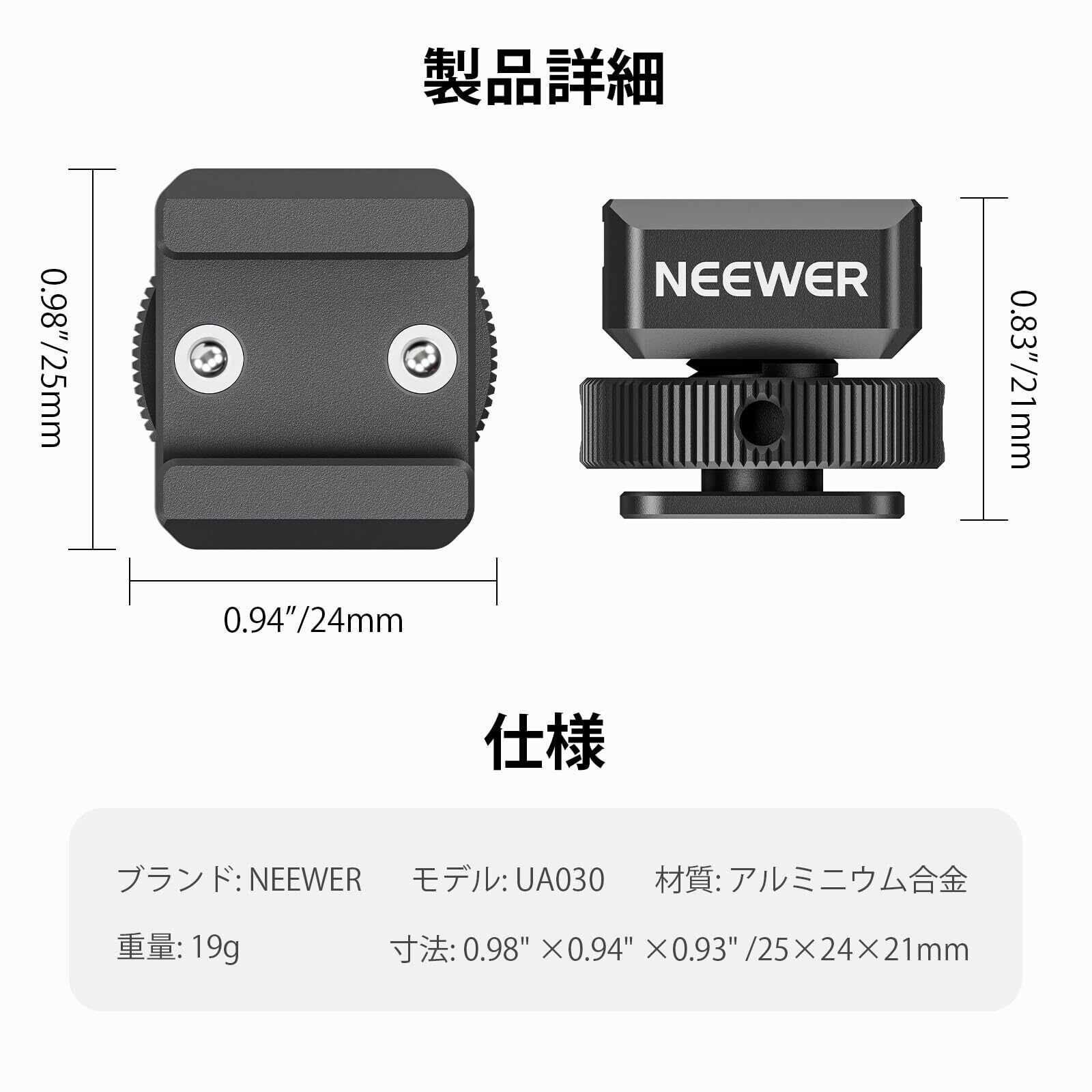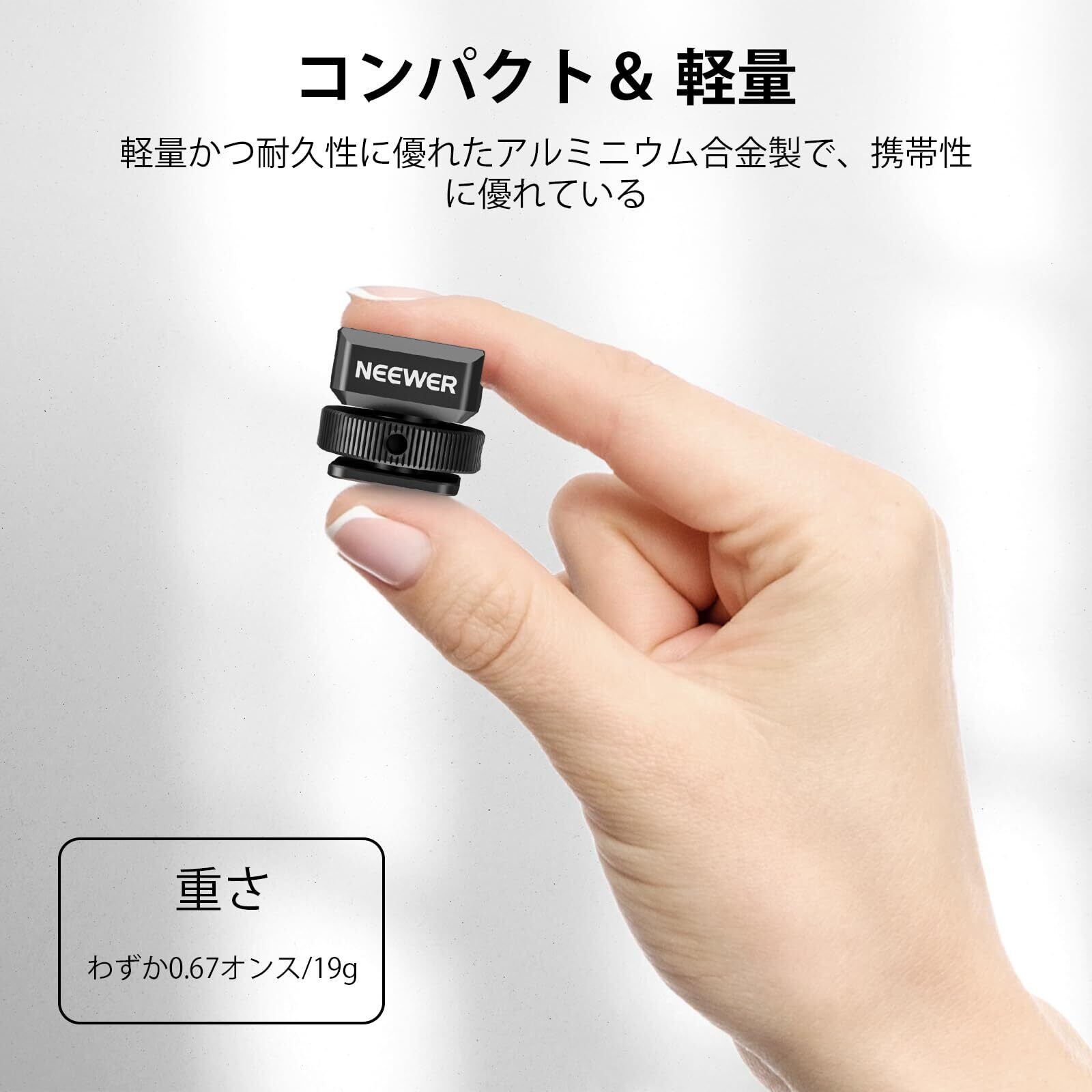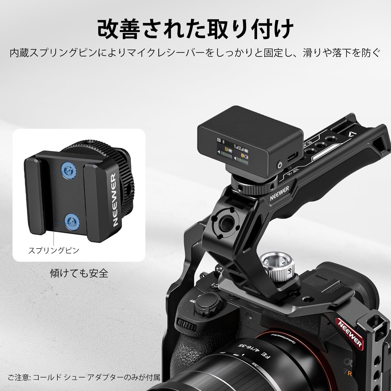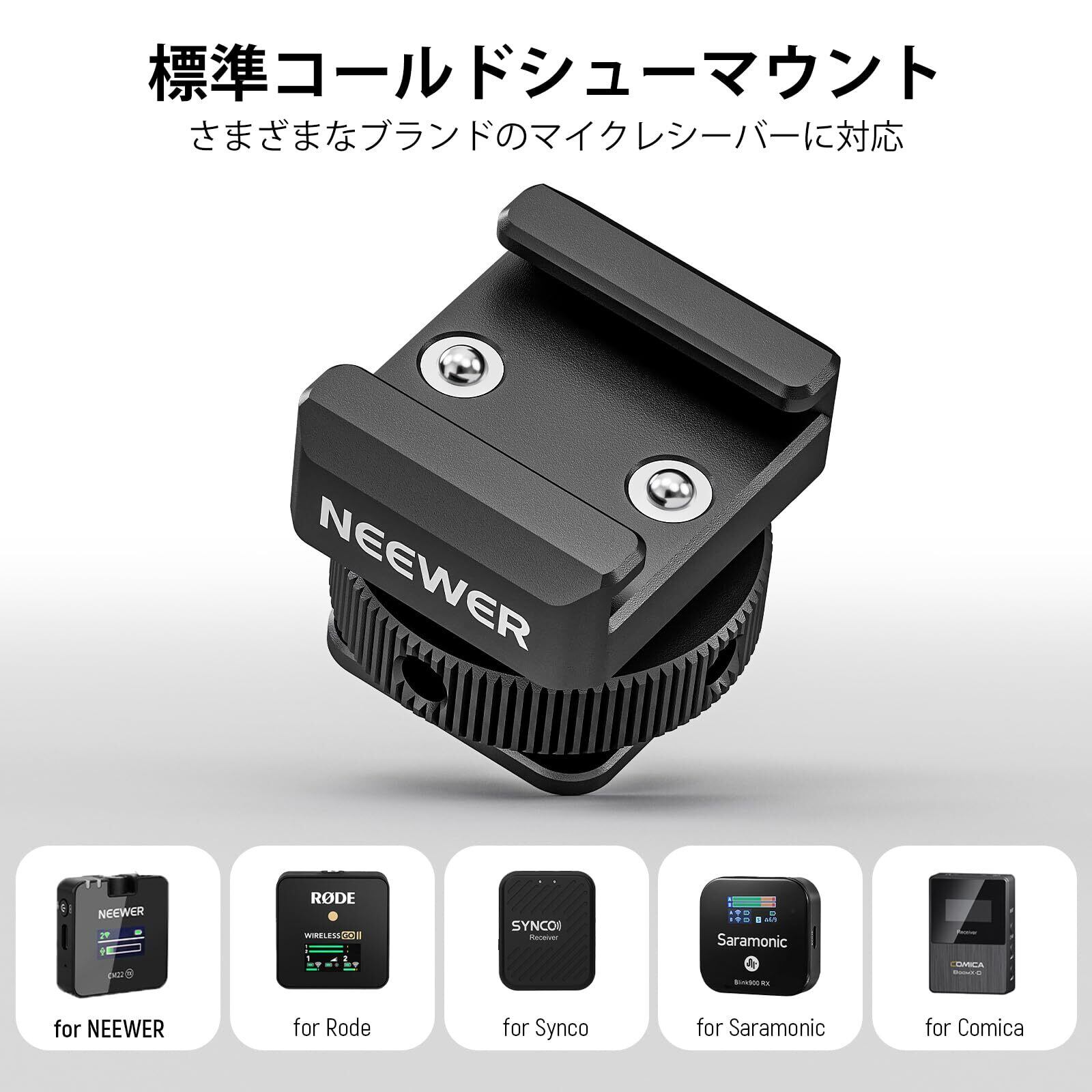 NEEWER 2個 コールドシューマウントアダプター コンパチブル DJI Hollyland Rode ワイヤレスラベリアマイクレシーバー 落下防止マイクアクセサリー 格納式ピン付き 金属製カメラケージマウントアダプター UA030
