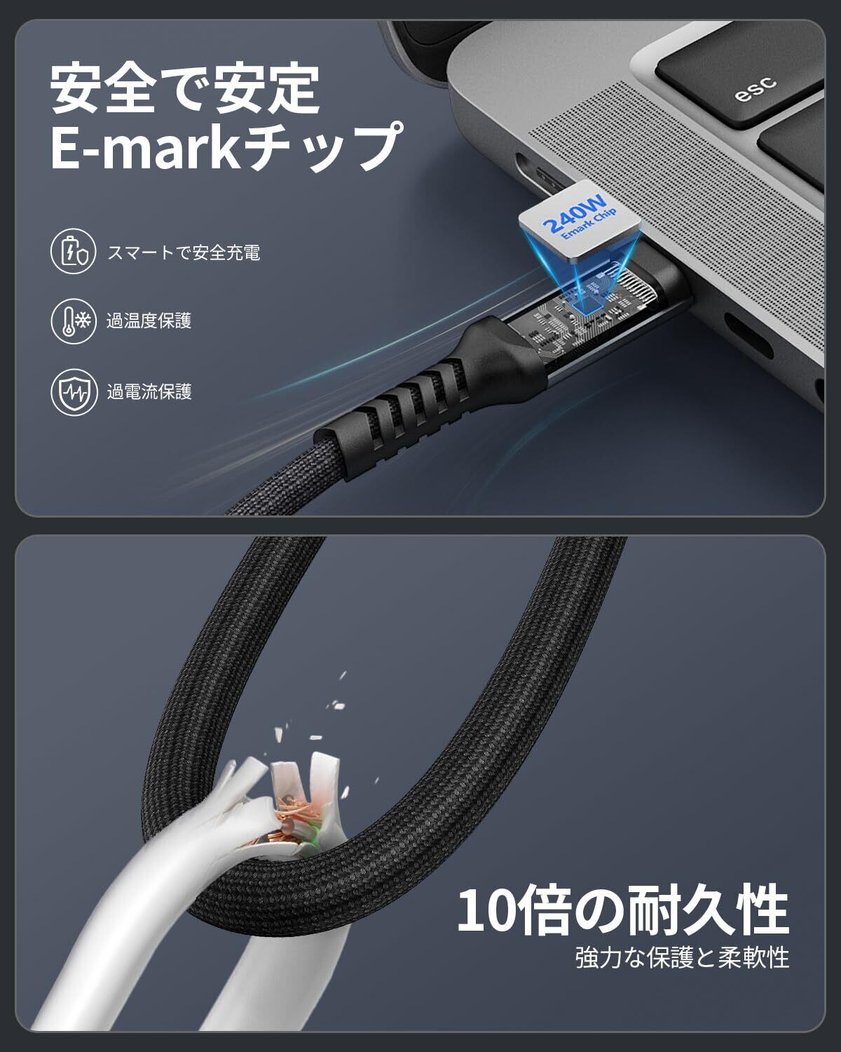 【究極の安全なE-marker 2.0スマートチップ】E-marker 2.0スマートチップと56KΩのプルアップレジスタを搭載し、過充電、過熱、過電流、短絡、過電圧からデバイスを保護します。最高の充電安全性とスマートな電力管理を提供し、安心して高速充電ができます。
