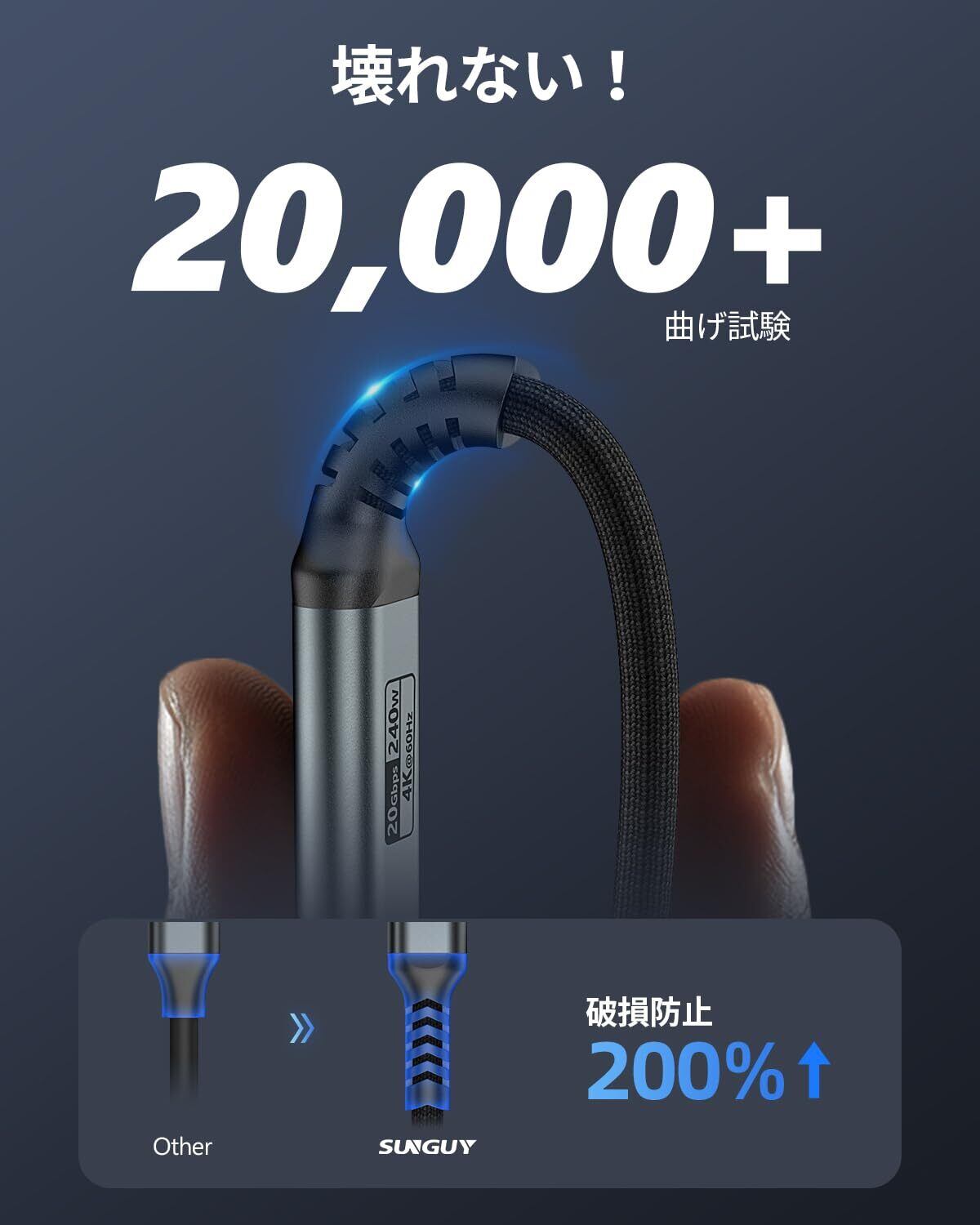 SUNGUY 240W USB C to C ケーブル 0.5M PD超高速充電タイプC ケーブル 20Gbps高速データ転送 4K@60Hz映像出力 短い Type-C ケーブル 高耐久断線防止ナイロン編み iPhone 16/15 シリーズ, MacBook Pro, iPad Pro/Air, Galaxy S24/S23, Pixelなどusb-cデバイス対応 50cm グレー