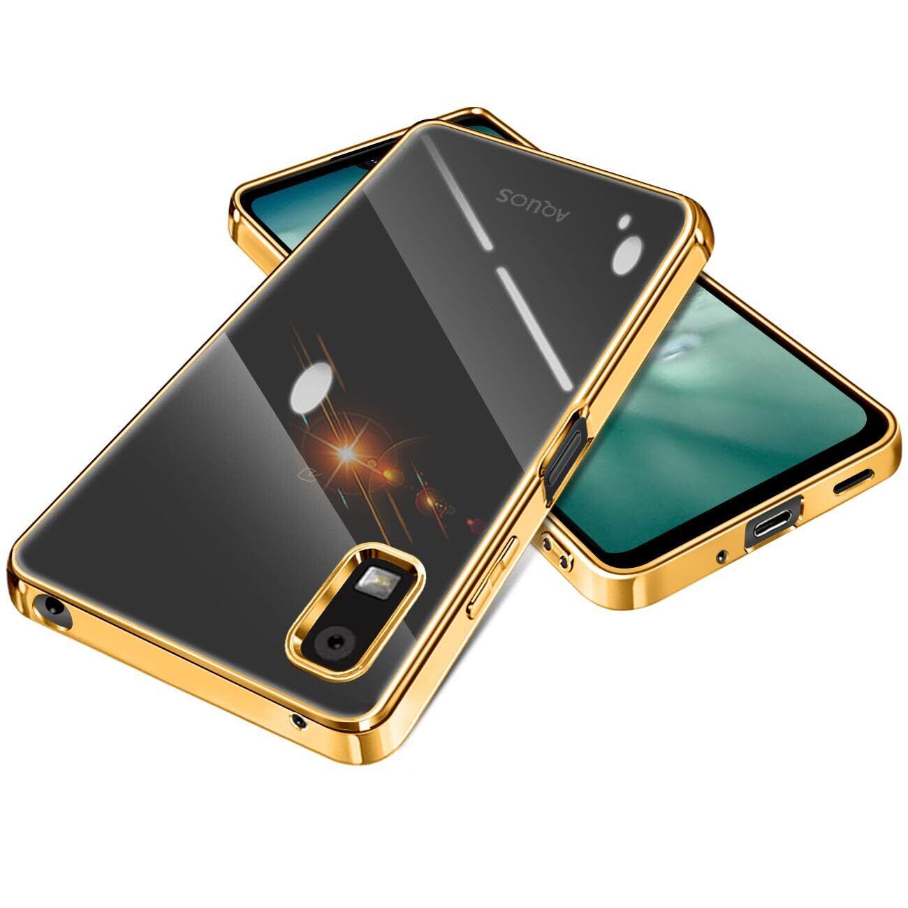 AQUOS wish3 ケース クリア ウィッシュ3 カバー 透明 スマホケース 耐衝撃 柔軟 TPU 保護カバー SH-53D A302SH SH-M25 A303SH カバー 衝撃吸収 メッキ加工 ソフトケース 人気 カバー ストラップホール付き ワイヤレス充電対応 アクオス ウィッシュ3 ケース(ゴールド)