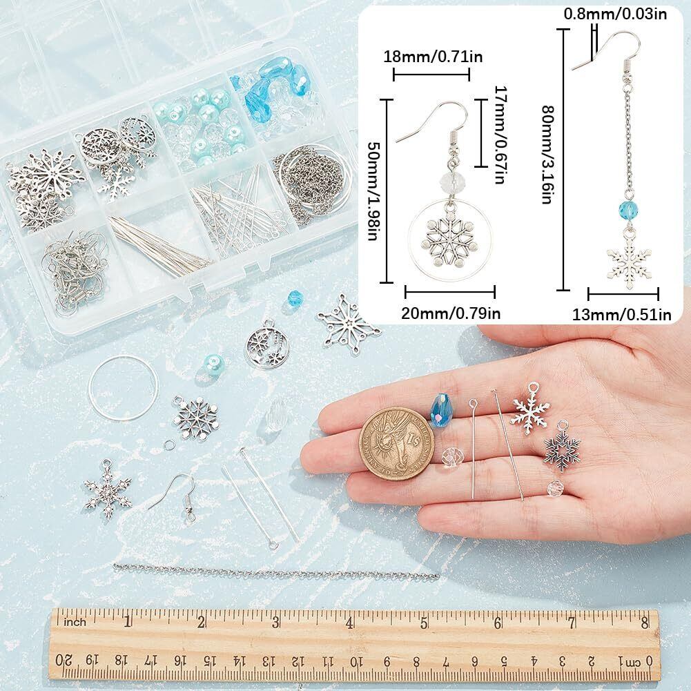イヤリング作成スターターキット: イヤリング作成キットには、冬の雪の結晶のイヤリングを作るために必要なすべてのアクセサリーが含まれています。DIY初心者に最適. スノーフレークチャーム22個をお届けします。62PCSガラスビーズ, ジュエリーチェーンの一部, 20PCSジャンプリング, リンキングリング4個。20個のピアスフック, ヘッドピン30個、アイピン20個。DIY用品と一緒に, 雪の結晶のイヤリングを10ペア作ることができます.