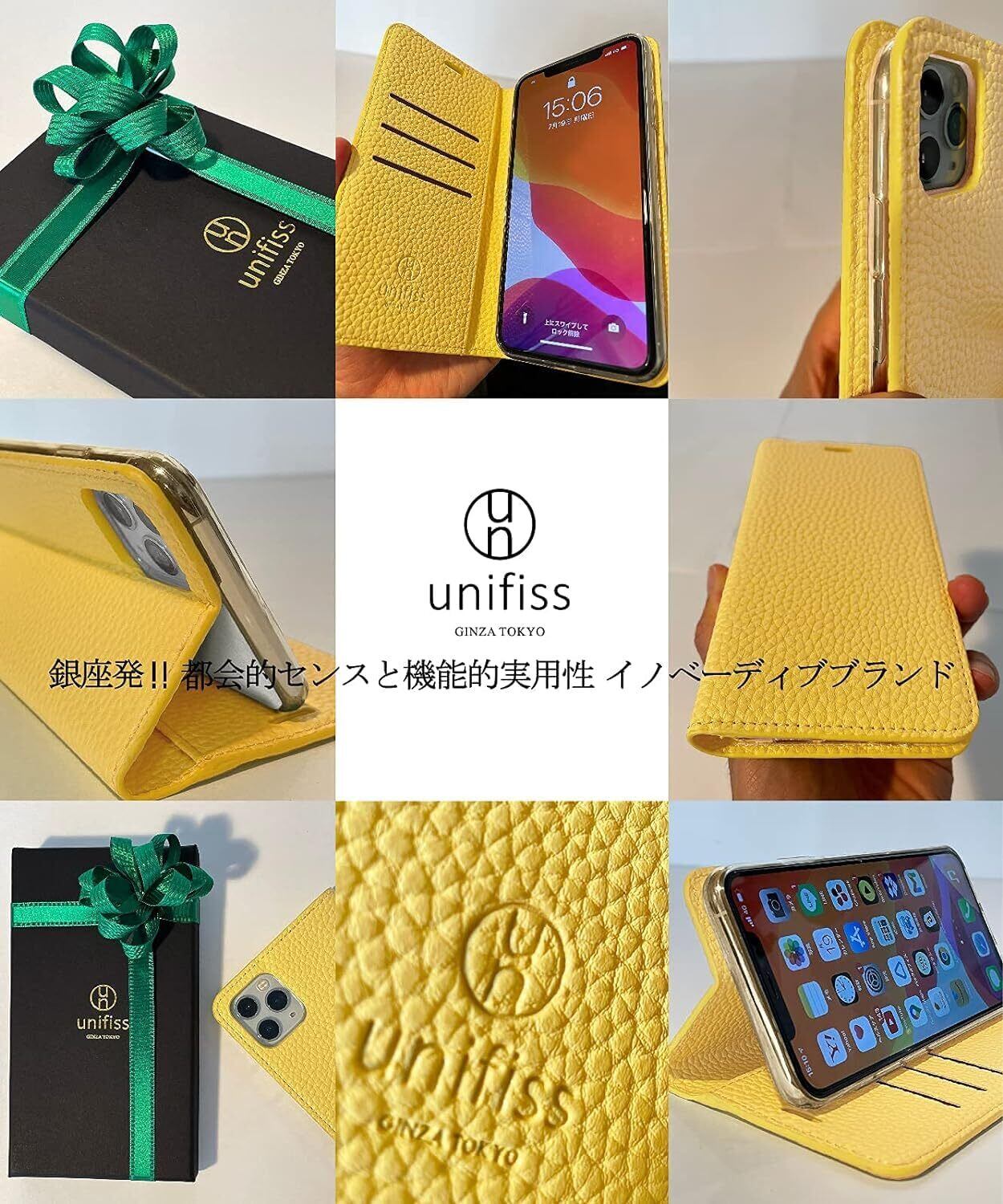 【 銀座 発! unifiss の 自信作! 高級 シュリンクPUレザー 使用。】 ラグジュアリー感、品質、デザイン にこだわった unifissから 8色の スマホケース が登場。上質で 発色がよい PUレザー を厳選しました。凹凸感のある 柔らかく 肌なじみのいい シュリンク PUレザー は、風合いは 本物の 革 のように なめらかで 美しく 柔軟 ながらも 強度 が しっかりしている のが特徴です。手に持った時の フィット感と 肌ざわりは 高級ブランド の レザー のような肌触りです。飽きのこない シンプル で 上品な 、大人の ipnone ケース をお楽しみください。