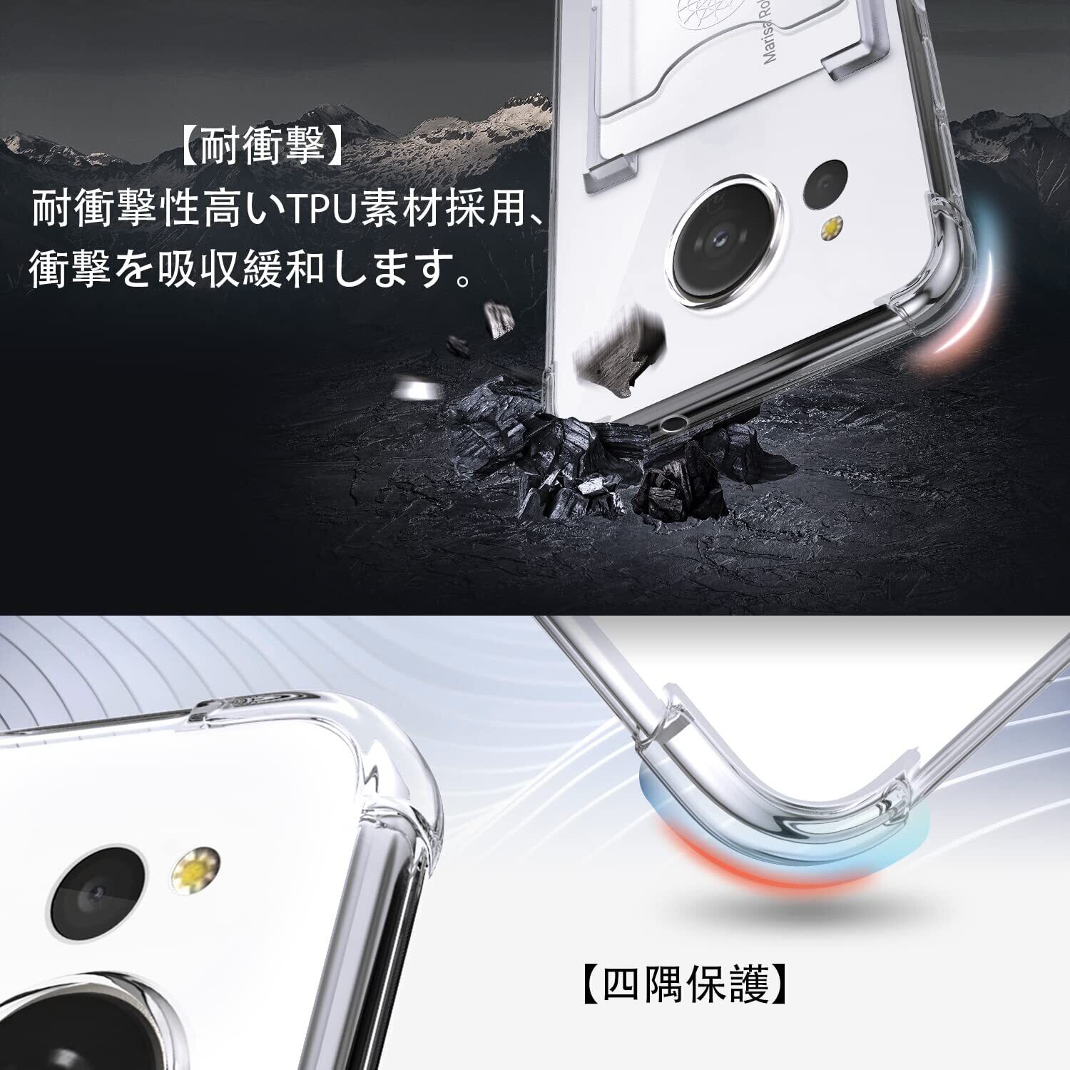 Rockaway AQUOS Sense8 ケース SH-54D SHG11 ケース カード収納 背面ポケット リング付き スタンド機能 耐衝撃 透明 TPU カバー シャープ アクオス センス8 スマホケース - クリア