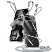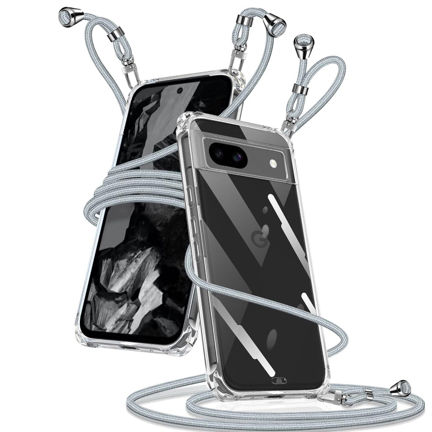 Google Pixel 8a ケース クリア ショルダー ピクセル8a カバー 携帯ストラップ Google Pixel 8a スマホケース 肩掛け 斜めかけ 縄掛けケース 透明 薄型 軽量 TPU 携帯ケース 紐付き 斜めがけ 織りストラップ付き 長さ調整可能 取り外し可能 落下防止 紛失防止(シルバー)