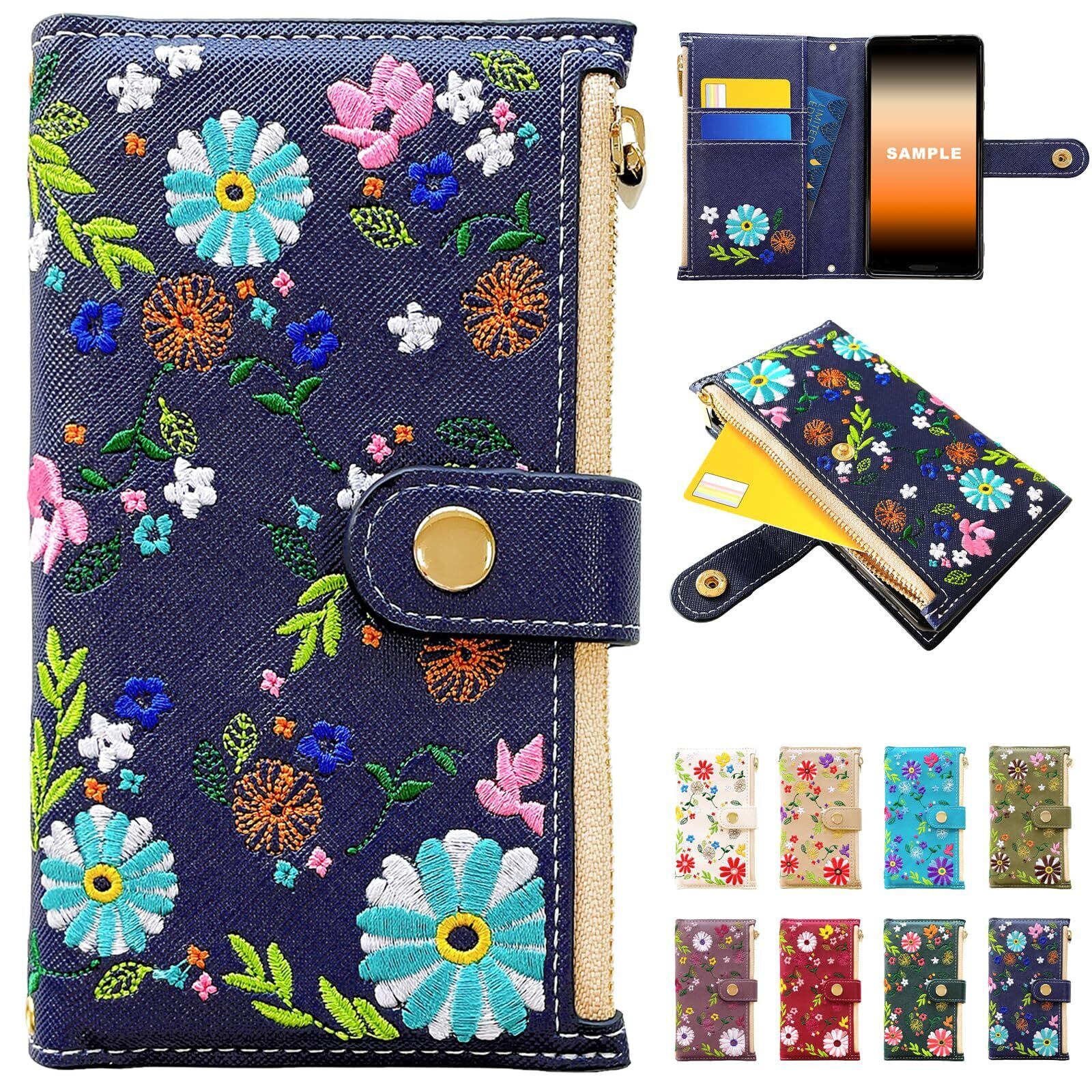 OPPO Reno3 A 用 ケース 手帳型 カバー 手帳型ケース Reno3A Reno3Aケース Reno3Aカバー OPPOReno3A OPPOReno3Aケース OPPOReno3Aカバー スマホケース スマホカバー おしゃれ花刺繍 ネイビー