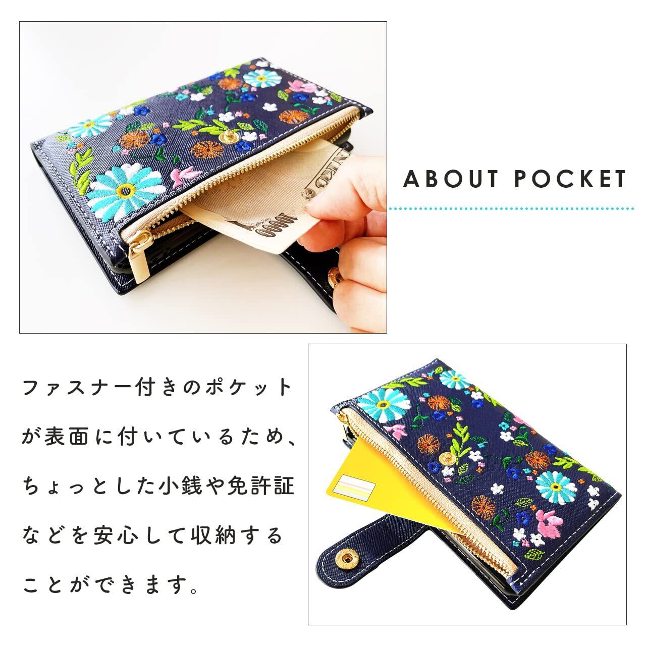 OPPO Reno 3 A Y!mobile 専用 手帳型ケース。小銭や免許証等の収納に便利なファスナー付きの手帳型ケースです。上品なサフィアーノ生地に、色鮮やかな花柄の刺繍を施しています。