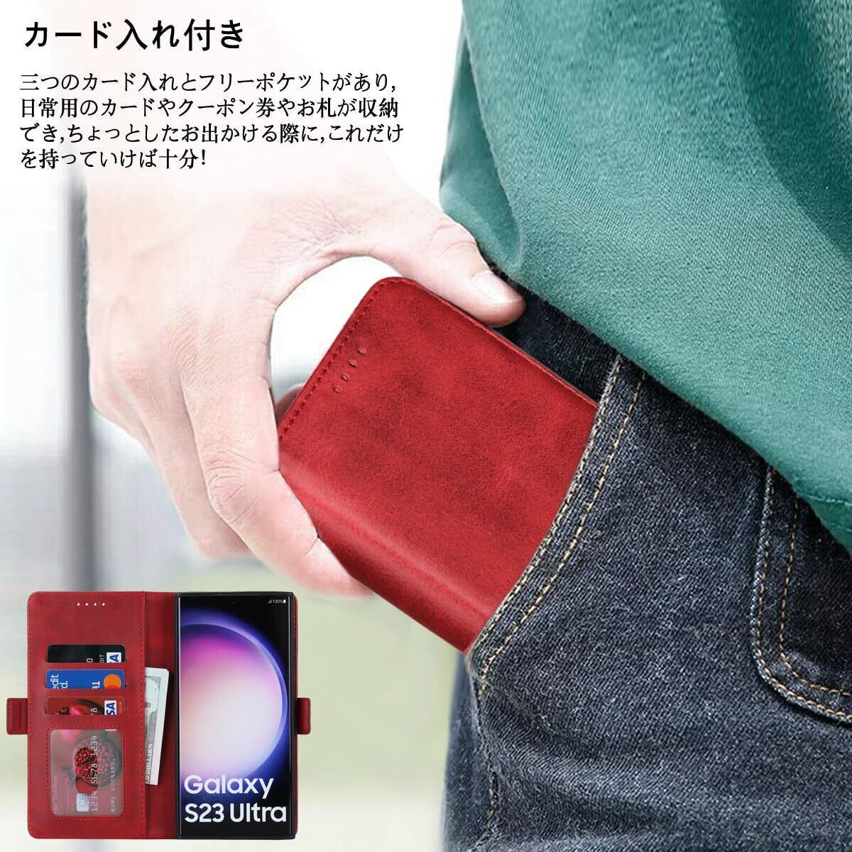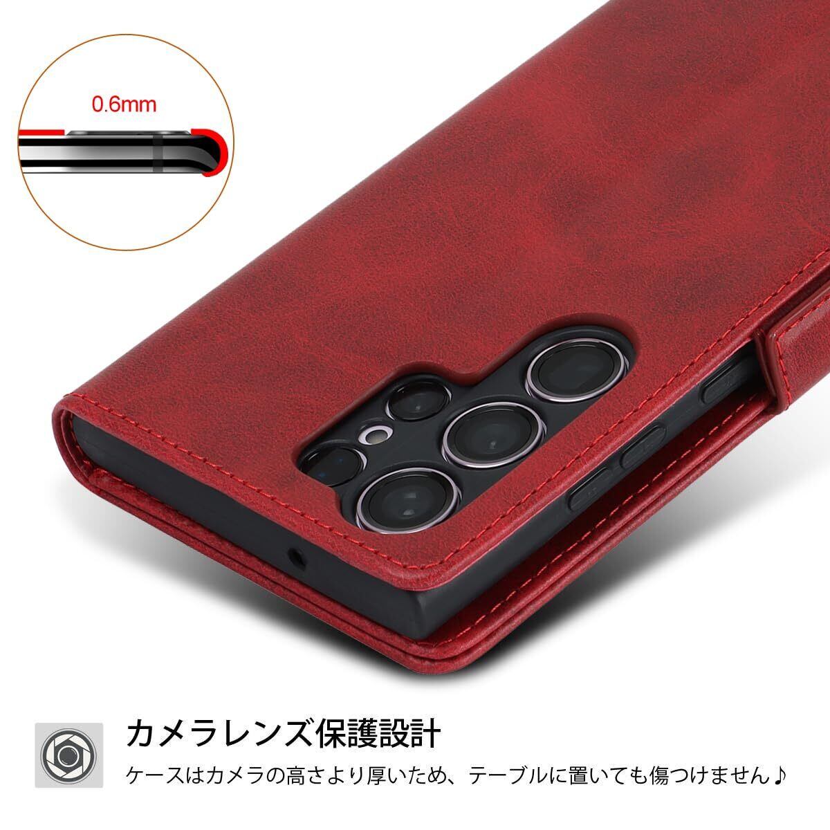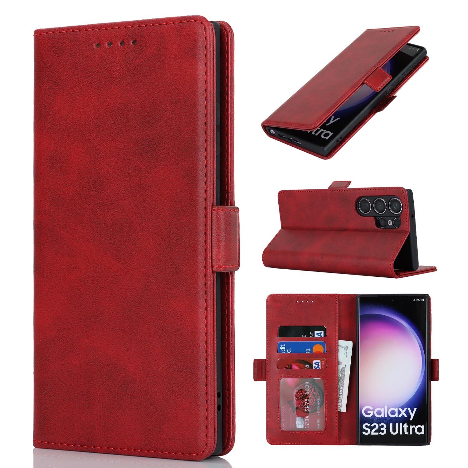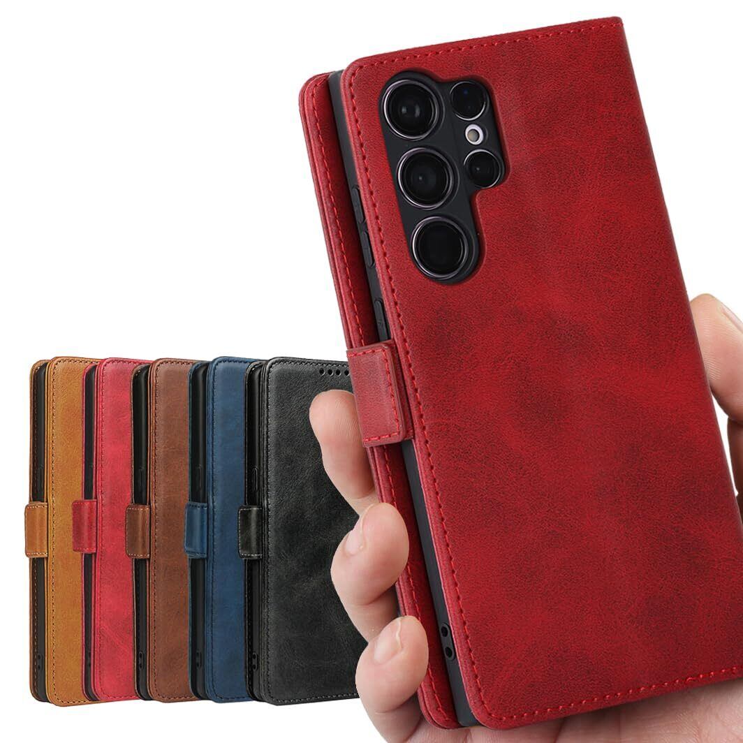 S23 Ultra ケース 手帳型 Galaxy S23 Ultra 5G ケース S23 Ultra galaxy ケース カバー SC-52D docomo SCG20 au 対応 サムスン S23 ウルトラ SCG20 SC52D ケース カバー S23ウルトラ カバー サムスン ギャラクシー S23ultra スマホケース 携帯カバー 手帳型 カバー 財布 適用 耐衝撃 case 【iCoverCase】 合成皮革 マグネット 留め具 ケース 手帳型 カードケース スマホケース 携帯カバー カード入れ スタンド機能 落ち着いた色 レトロ レッド